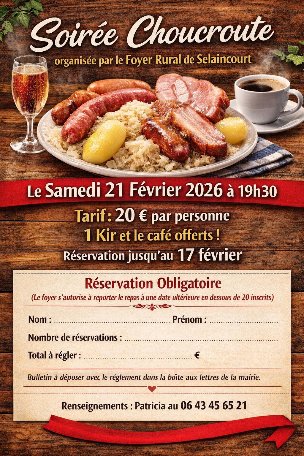 Le Foyer Rural organise un repas Choucroute cuisiné par Manu Traiteur