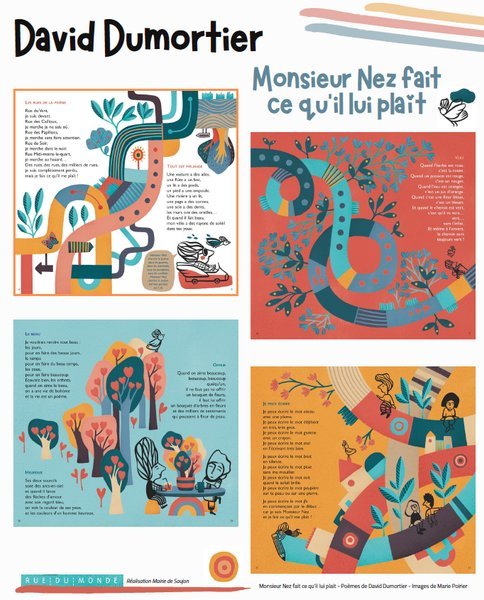 Exposition autour des livres de David Dumortier, ainsi que des cartes poétiques réalisées par les enfants du pôle enfance jeunesse de Saujon.