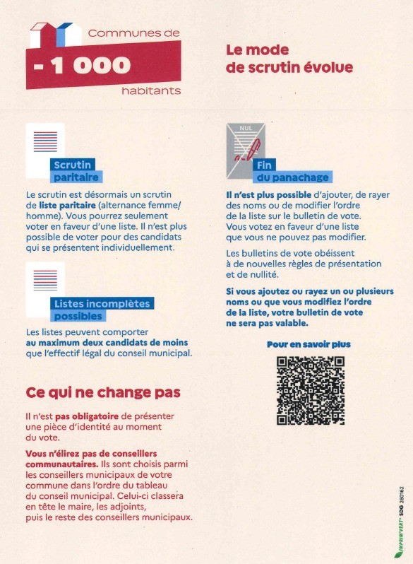 ÉLECTIONS MUNICIPALES : CHANGEMENT DE MODE DE SCRUTIN - COMMUNE DE MOINS DE 1000 HABITANTS
