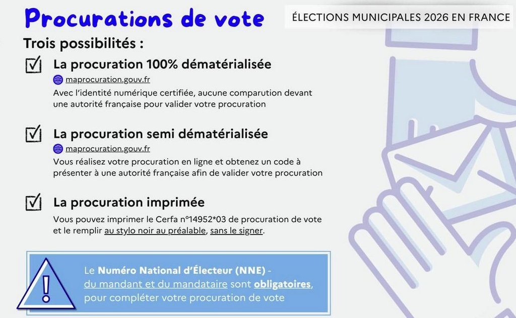 Élections municipales 15 mars 2026 - Absent le jour des élections, vous pouvez opter pour le VOTE PAR PROCURATION.