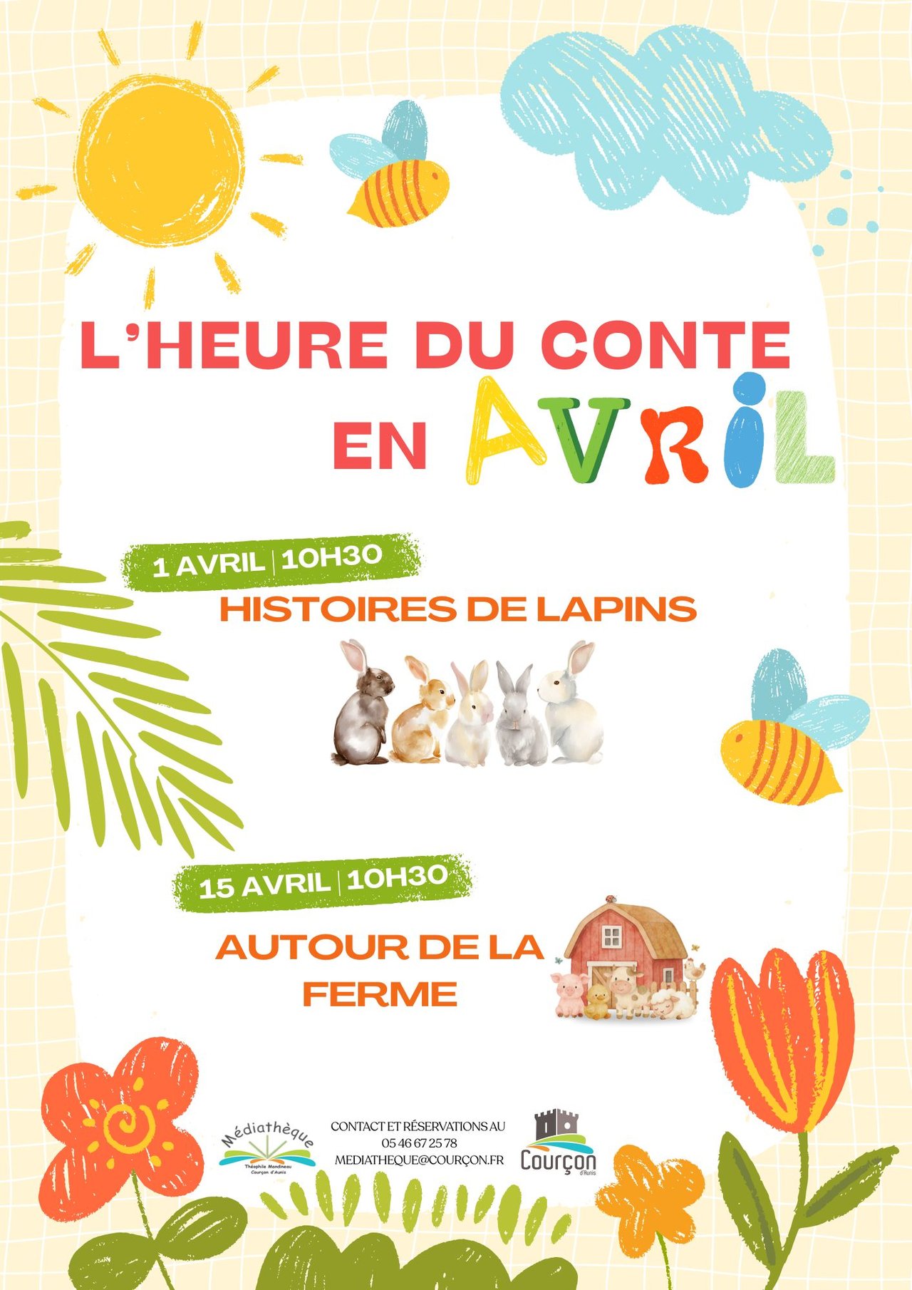 🐮 Mercredi 15 avril – 10h30 à 11h30 Histoires de la ferme, pour découvrir les animaux et la vie champêtre.