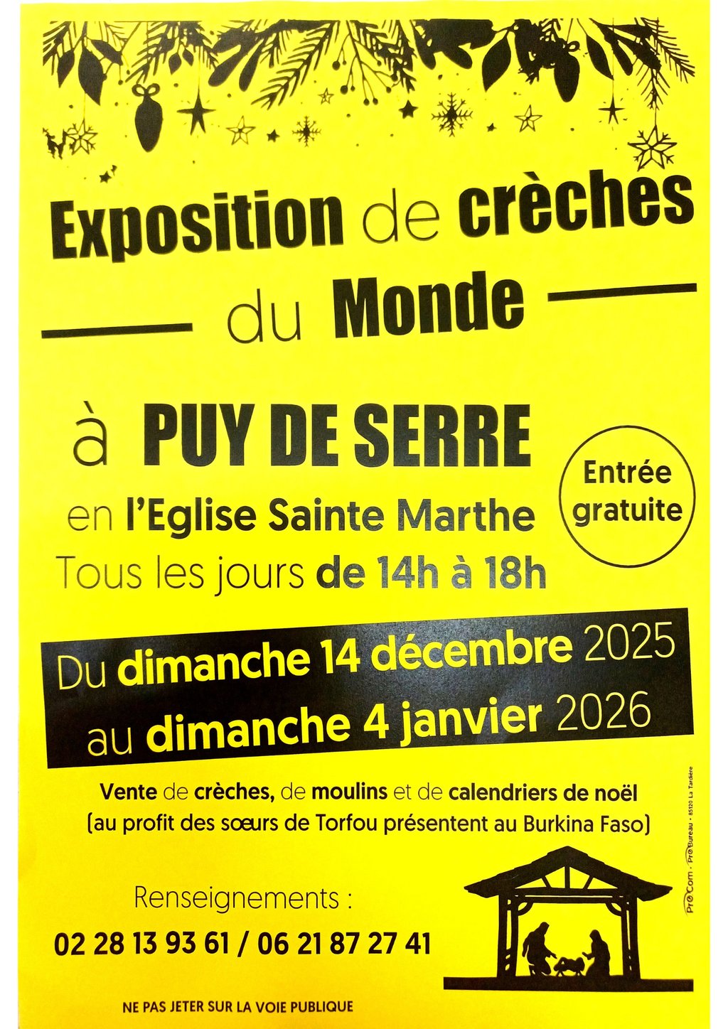 L'association AEP l'Avenir et les bénévoles vous invite à venir découvrir ou redécouvrir plus de 150 crèches du monde entier, dans une nouvelle mise en scène, à l'Eglise Ste Marthe de Puy de Serre!