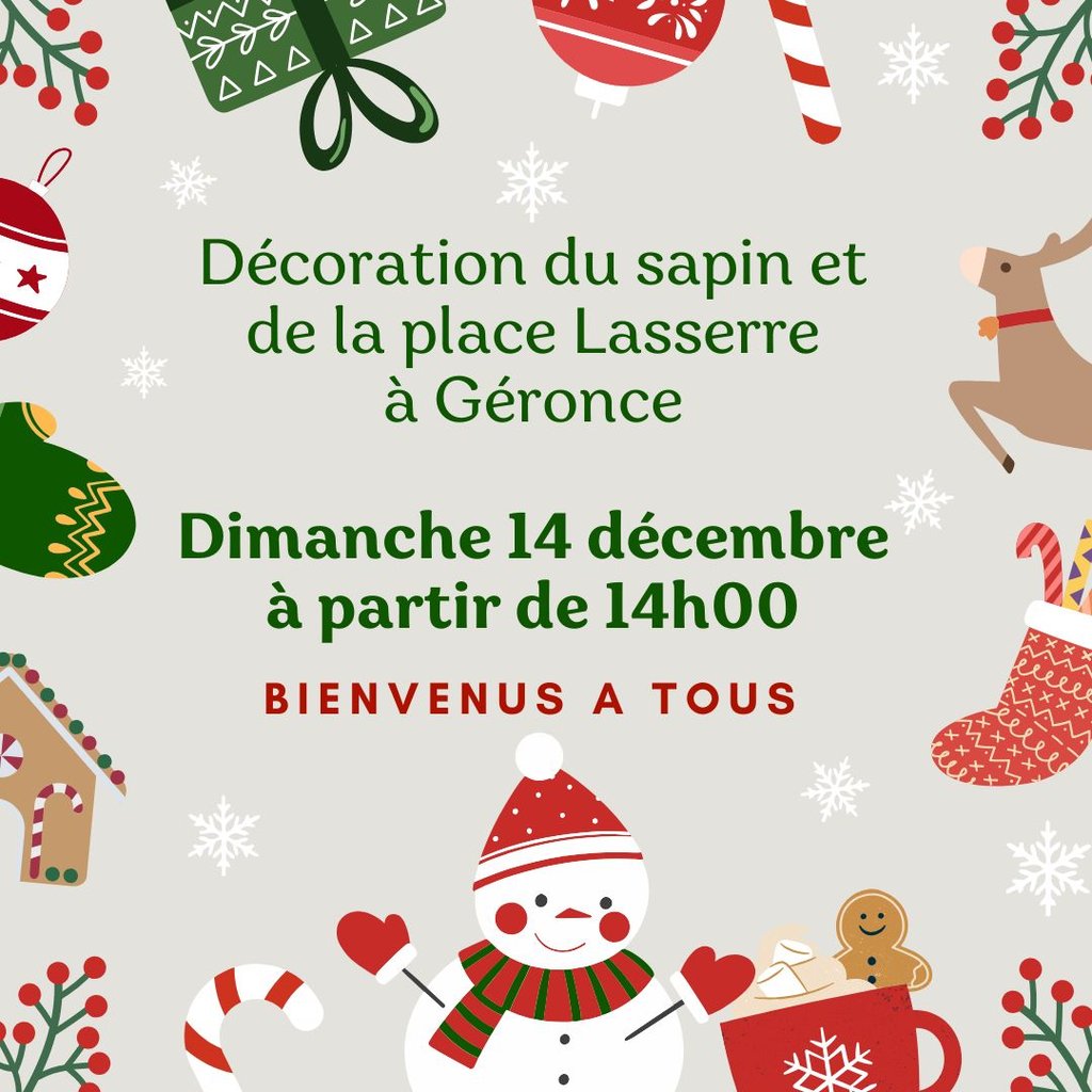 Dimanche 14 décembre à partir de 14h installation et décoration du sapin sur la place Lasserre. Ouvert à tous !