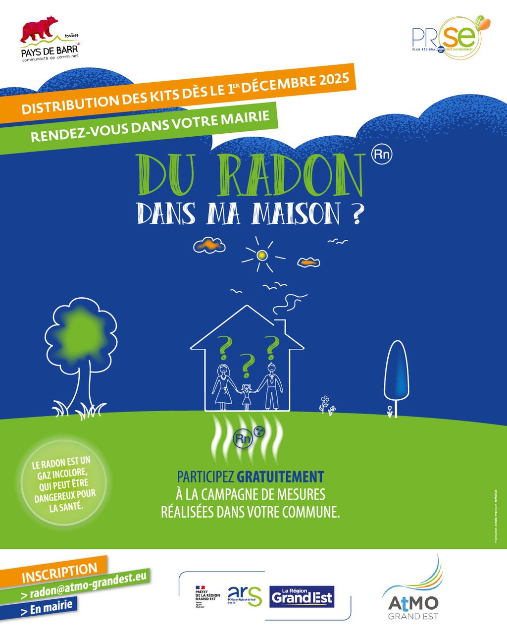 Vous habitez dans la Communauté de Communes du Pays de Barr ? Testez votre éligibilité et inscrivez-vous dès le 1er décembre pour recevoir gratuitement votre kit de mesure radon 👉 https://radon.atmo-grandest.eu.
