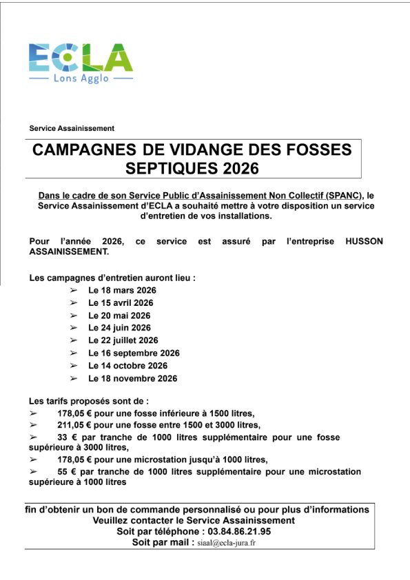CAMPAGNES DE VIDANGE DES FOSSES SEPTIQUES 2026