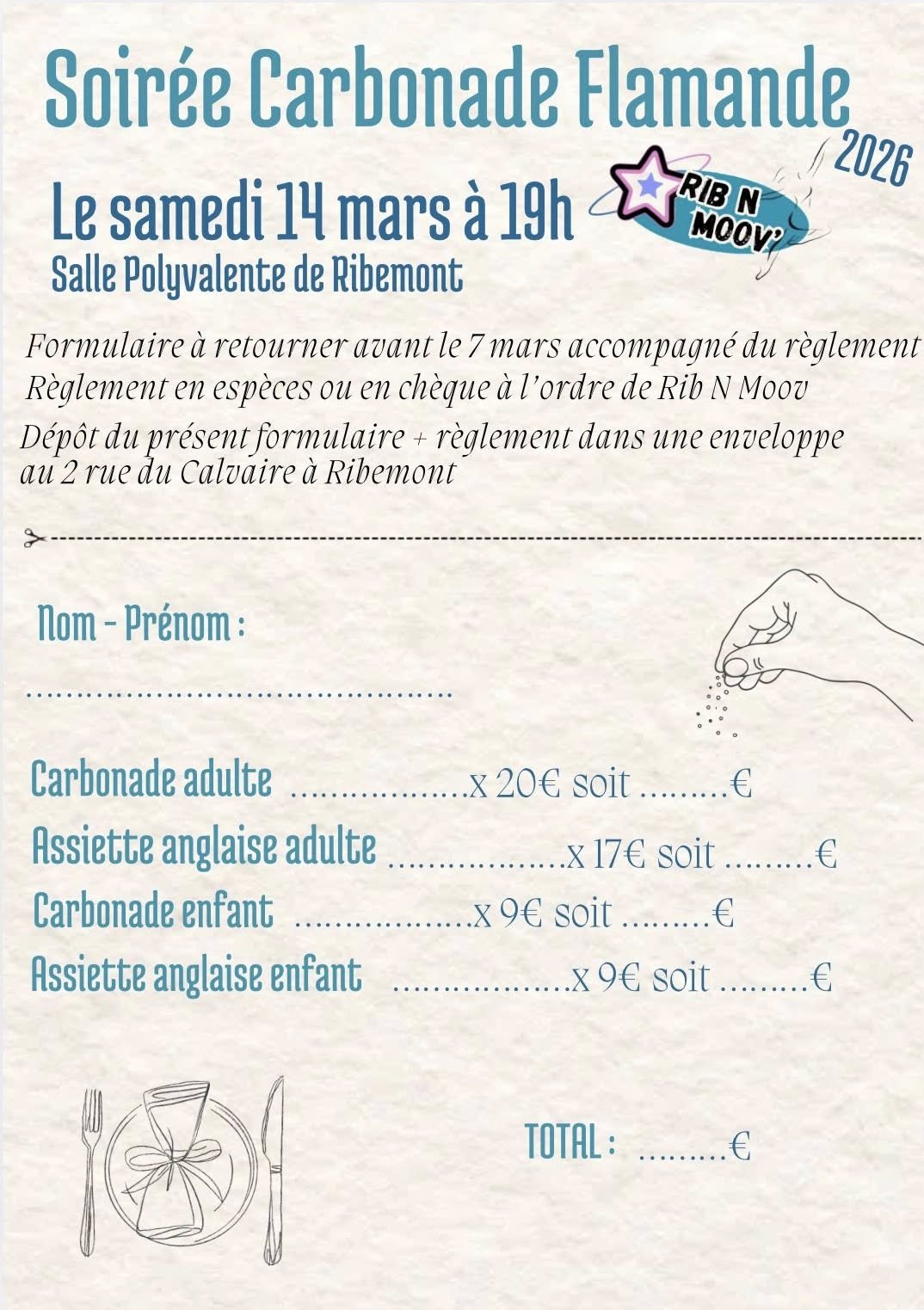 À retourner avant le 7 mars accompagné du règlement.
