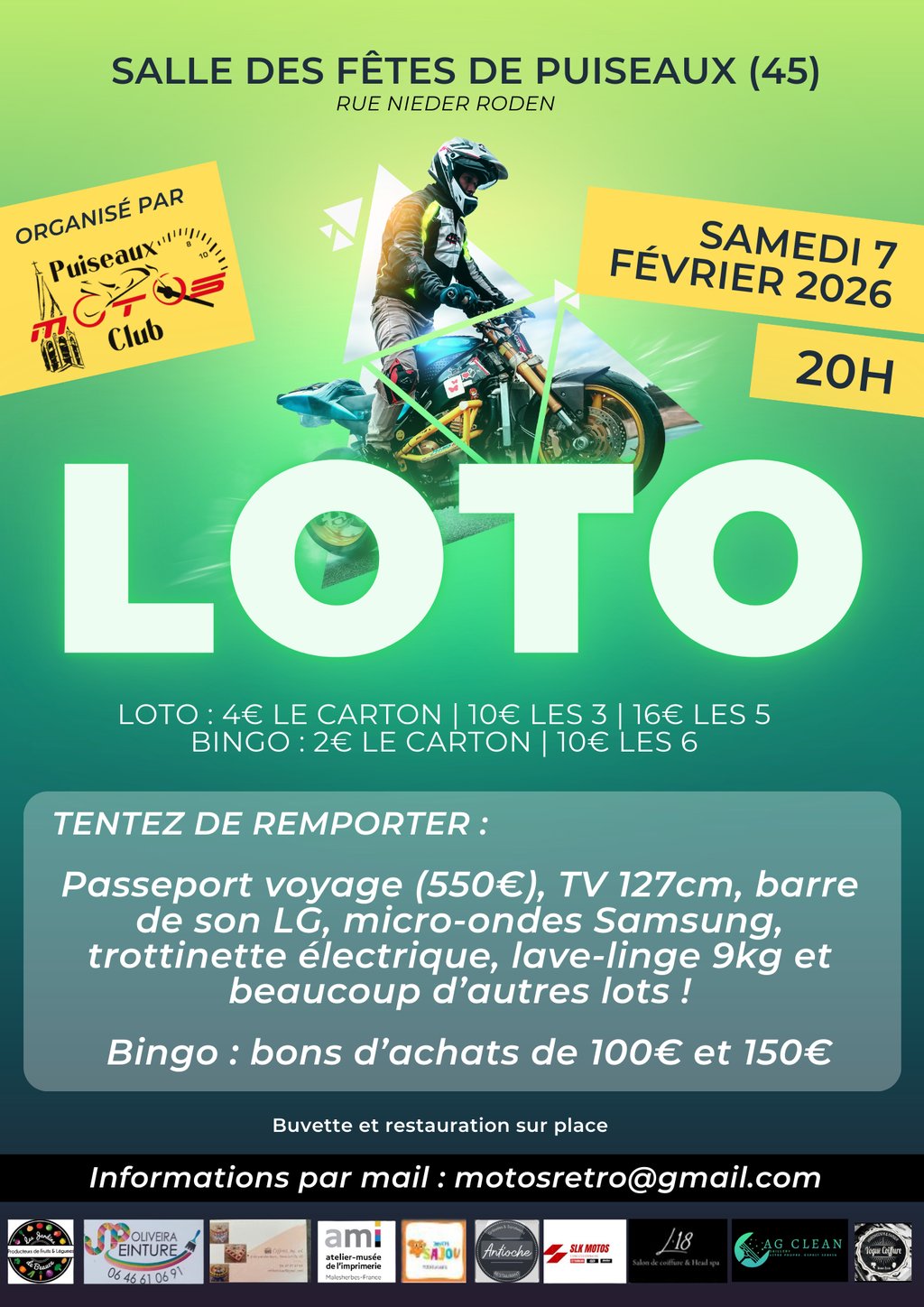 Rendez-vous le samedi 7 février pour participer au loto du Puiseaux motos club !