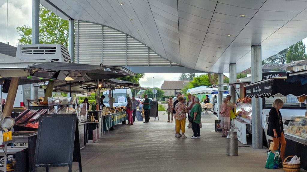 Retrouvez tous les producteurs, artisans, marchands de vêtements, de chaussures et d'autres spécialités sous la halle marchande.