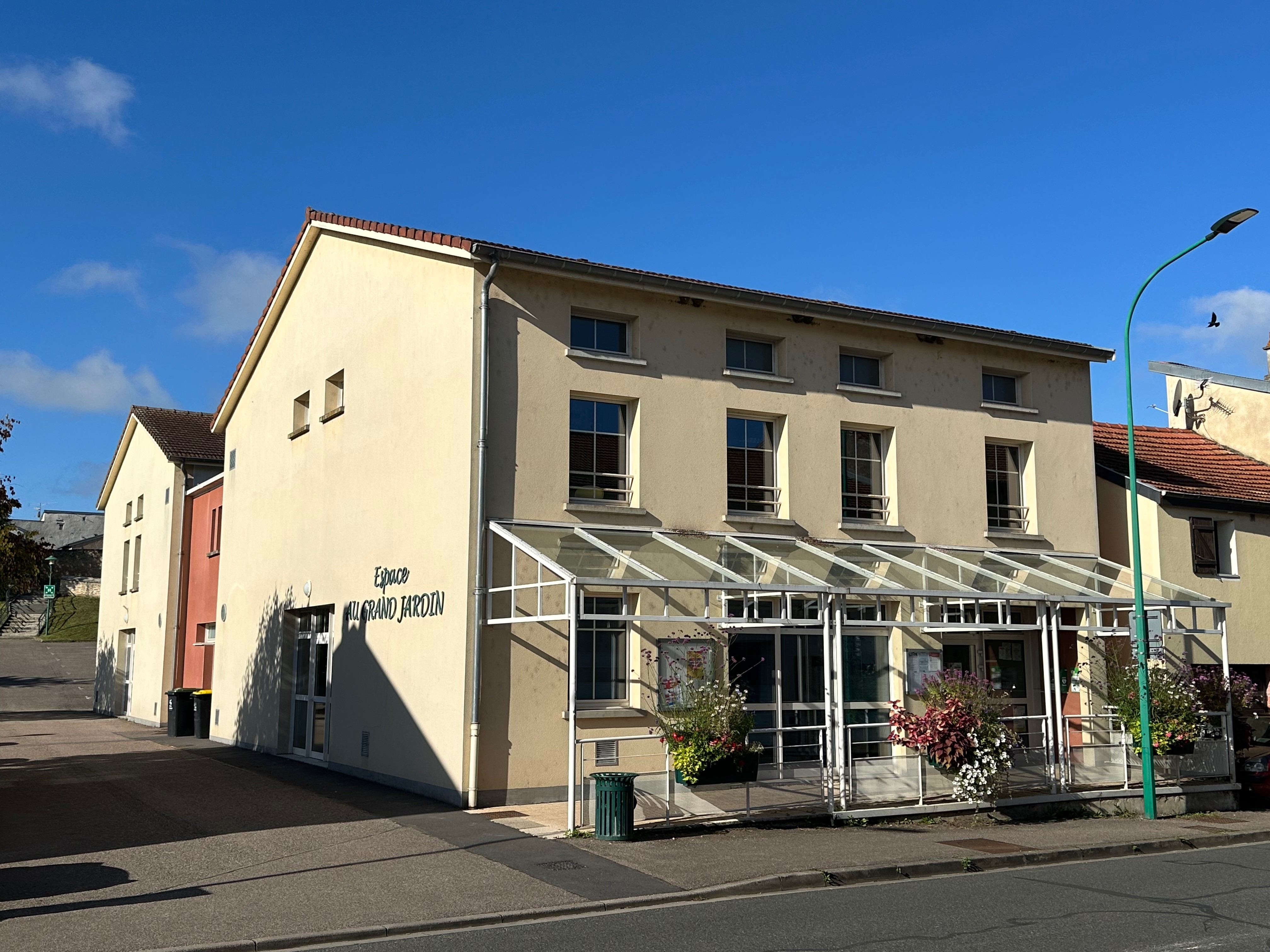 L'espace au Grand Jardin est un bâtiment qui dispose de 4 salles aux fonctions diverses : Cantine et garderie de l'école élémentaire, salle de danse et DOJO.