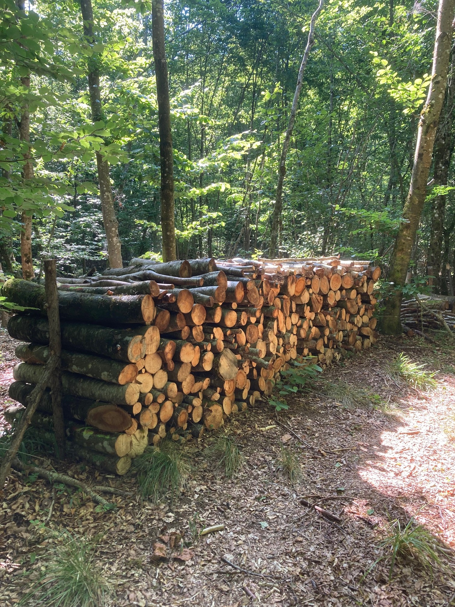 | Le niveau de fertilité de notre territoire se situe entre " bon " et "très bon" Composition actuelle : Sur cette région de sols calcaires, la répartition des essences est la suivante : Sur 94,56 ha, les essences suivantes représentent 13 % Hêtres, tilleuls à grandes feuilles, érables sycomores, alisiers Sur 126,64 ha, les essences suivantes représentent 17 % Hêtres, érables, alisiers torminals, merisiers Sur 104,64 ha, les essences suivantes représentent 14 % Hêtres, érables, merisiers, alisiers torminals, chênes sessiles Sur 404,45 ha, les essences suivantes représentent 56 % Chênes sessiles, merisiers, hêtres, érables, frênes communs, alisiers terminals |