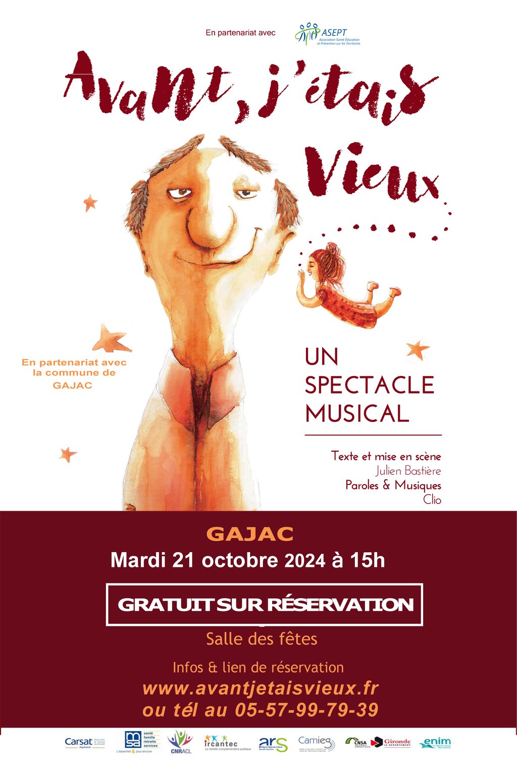 L’ASEPT Gironde vous convie au GAJAC le mardi 21 octobre 2025, de 15h00 à 17h00, pour une représentation gratuite dédiée à tous ceux et celles à partir de 55 ans.