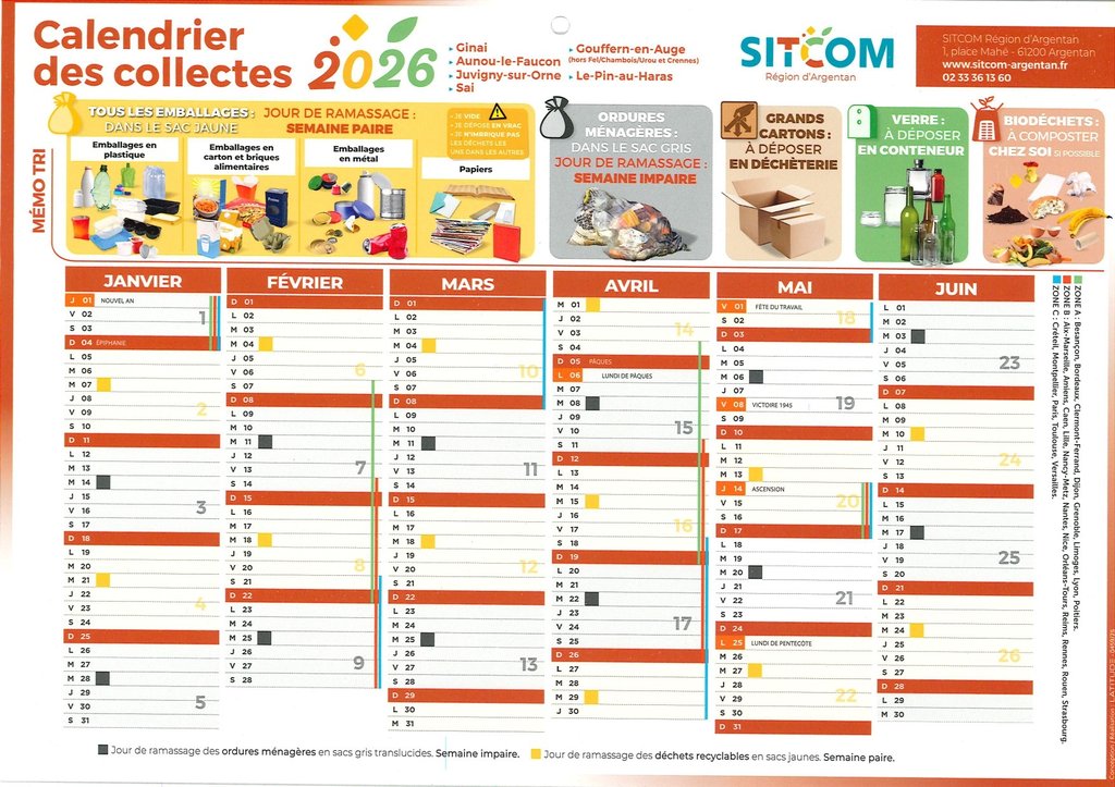LE CALENDRIER DE COLLECTE DES ORDURES MÉNAGÈRES 2026 EST DISPONIBLE DÈS À PRÉSENT
