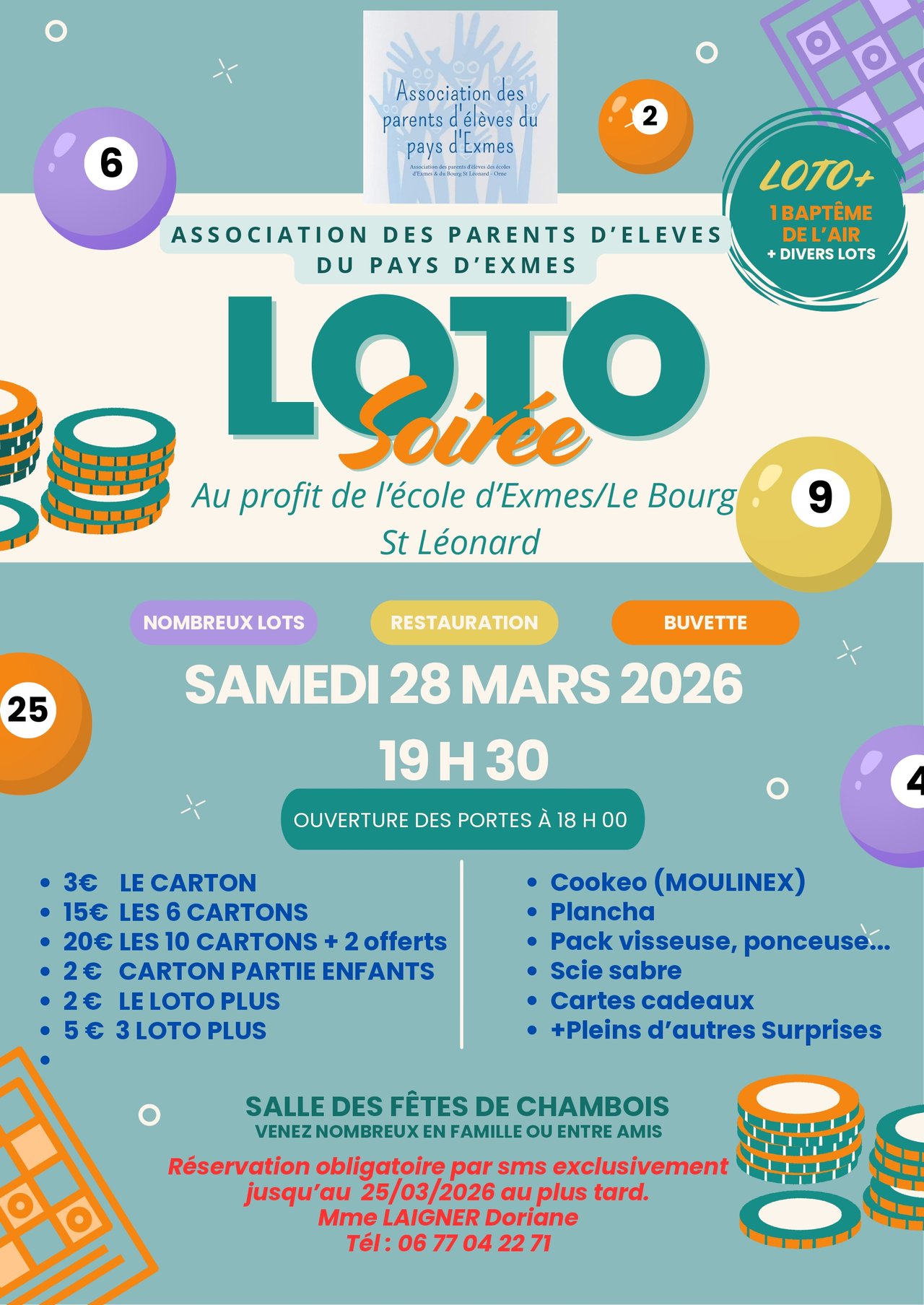 SOIRÉE LOTO LE SAMEDI 28 MARS À LA SALLE DES FÊTES DE CHAMBOIS !