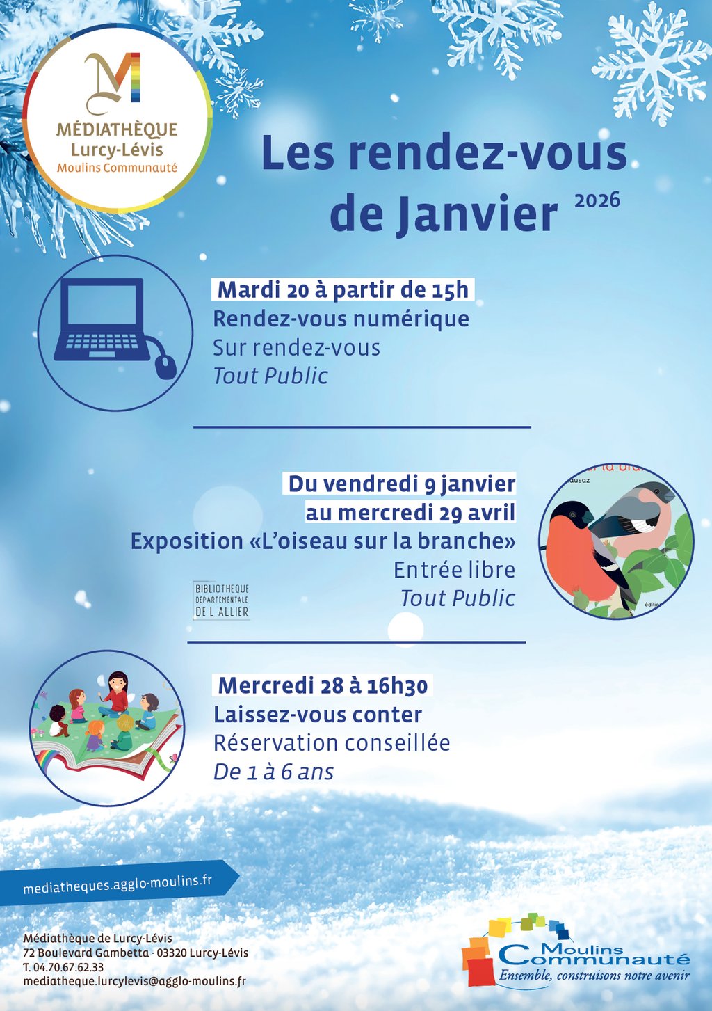LES RENDEZ-VOUS DE JANVIER À LA MÉDIATHÈQUE DE LURCY-LÉVIS