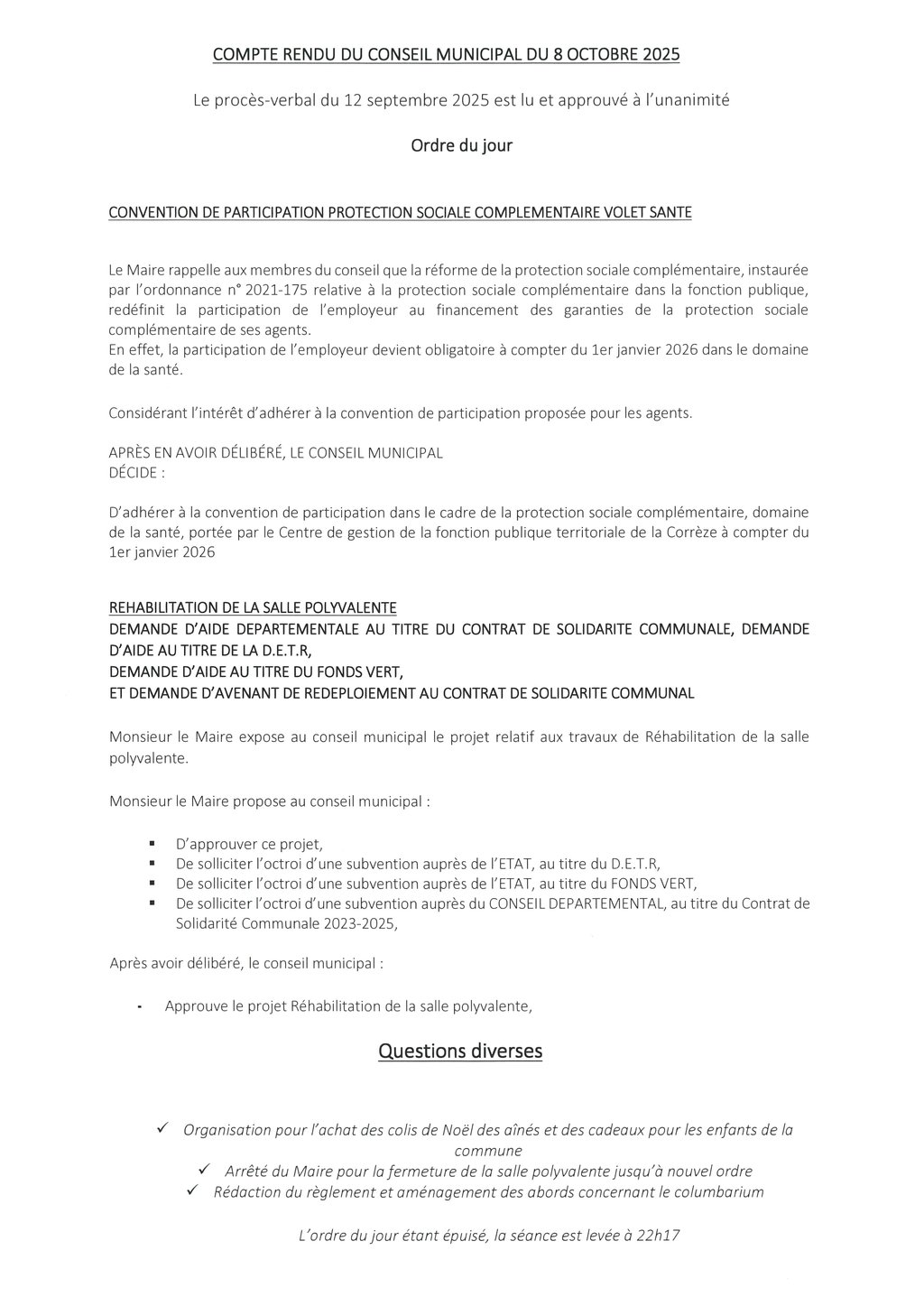 COMPTE RENDU DU CONSEIL MUNICIPAL DU 8 OCTOBRE 2025
