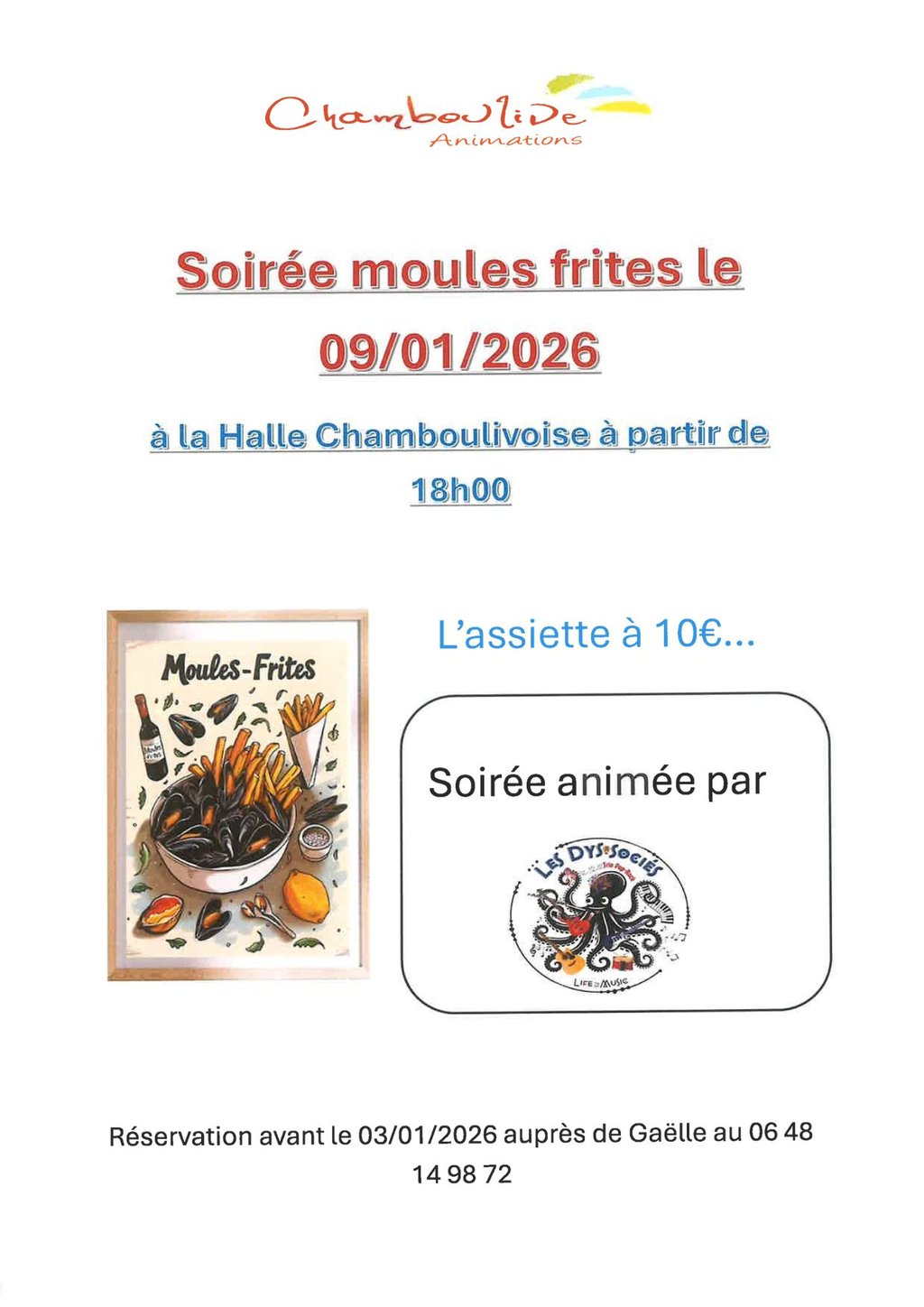 ➡️ repas moules frites 10€, réservation auprès de Gaëlle au 0648149872
