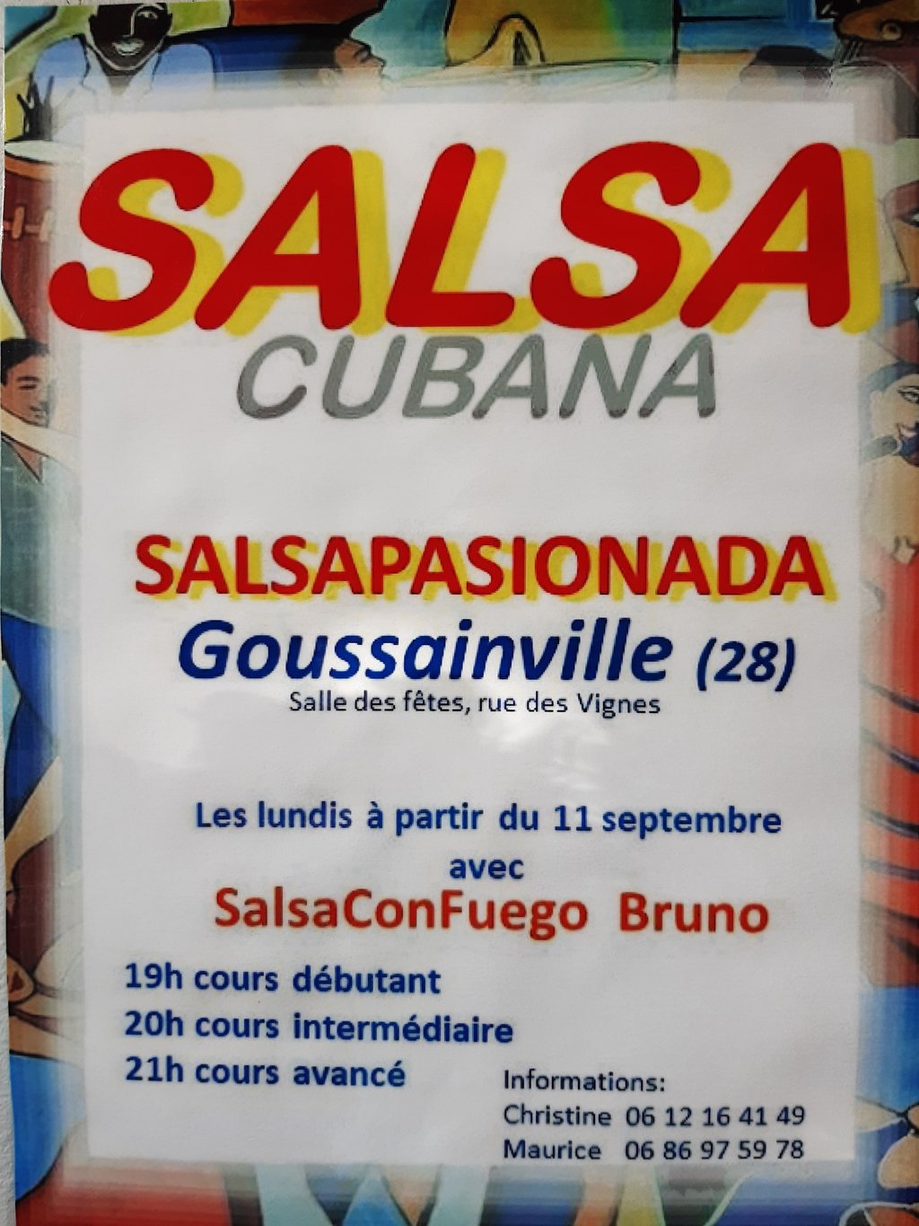 SALSAPASIONADA : Depuis plusieurs années, l'association invite à danser dans une ambiance conviviale. Nous souhaiterions toutefois que plus de Goussainvillois participent à ce divertissement qui combine l'activité physique, l'écoute de la musique, la mémoire psycho-corporelle et la relation aux autres dans une ambiance festive. Nous offrons deux cours d'essais gratuits afin de découvrir la Salsa.