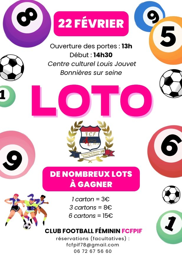 Le club de football FCFPIF organise un loto le 22 février 2026 au Centre culturel Louis Jouvet.