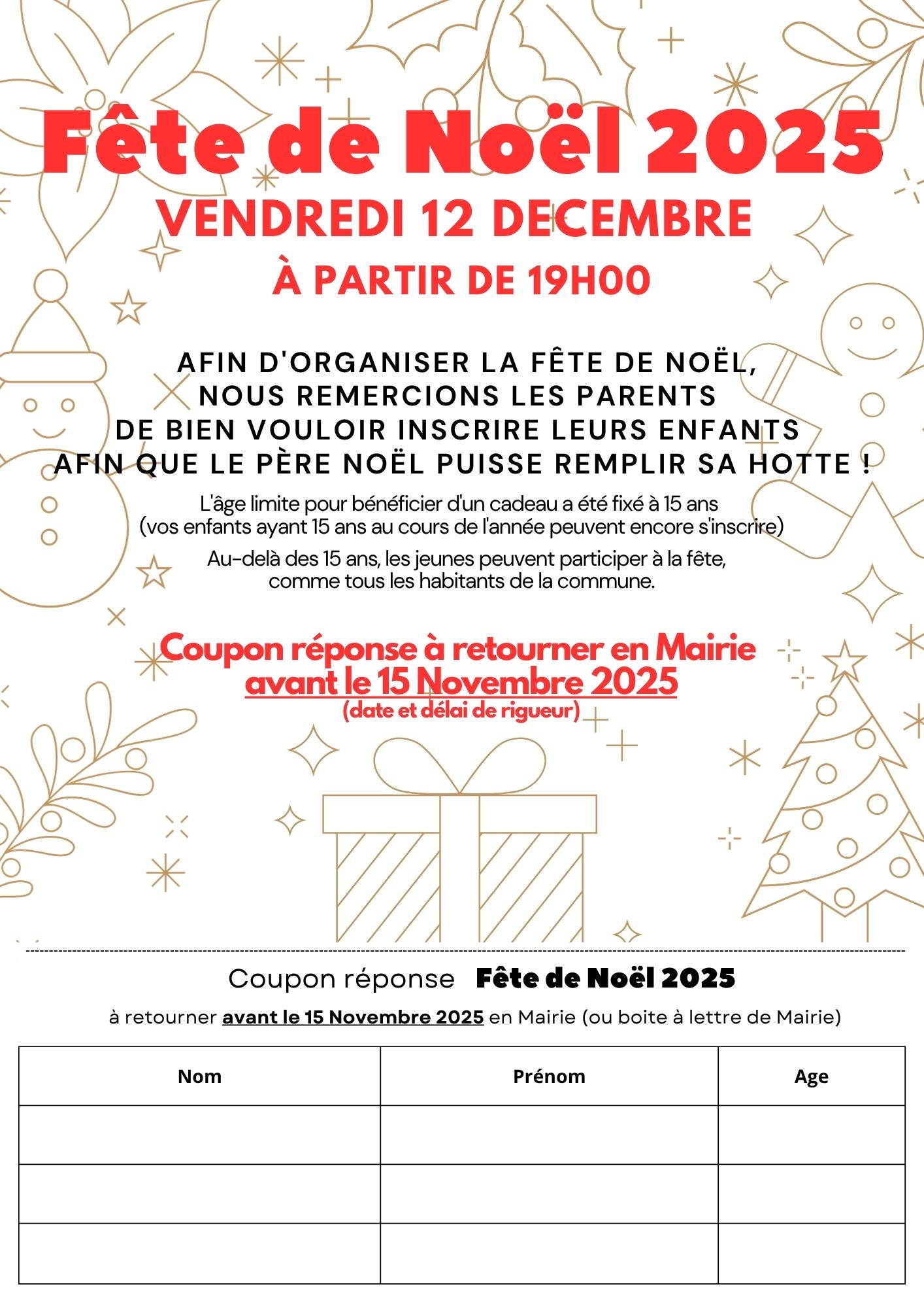 Penser à inscrire vos enfants afin que le Père Noël dépose leur cadeau en Mairie,