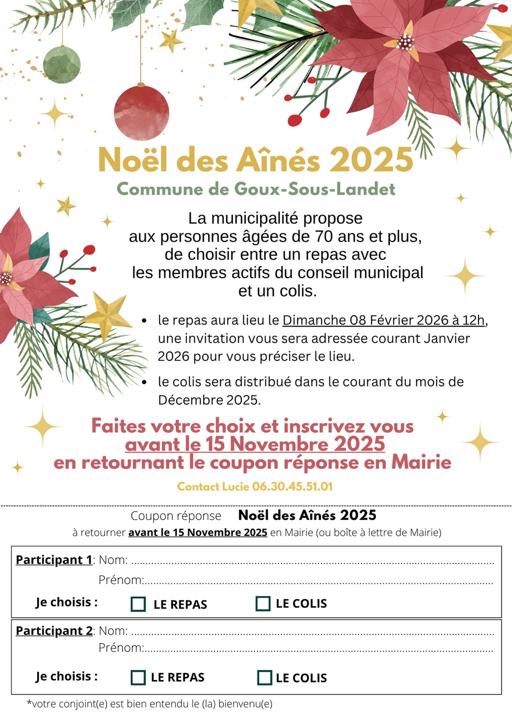 Penser à faire votre choix entre un colis ou le repas avec le conseil municipal