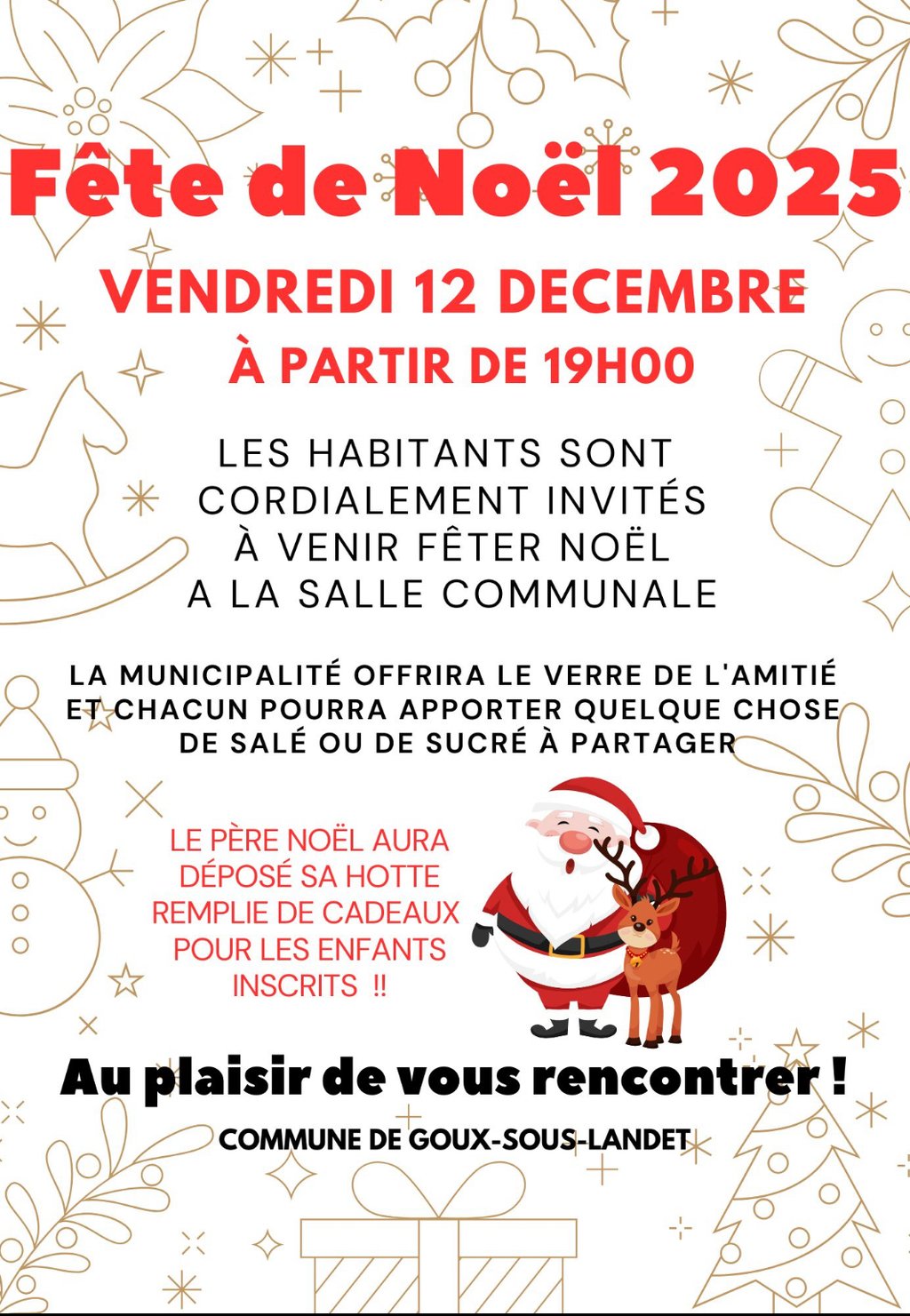 La commune donne rendez-vous aux habitants, leur famille et amis, pour la fête de Noël 2025 :