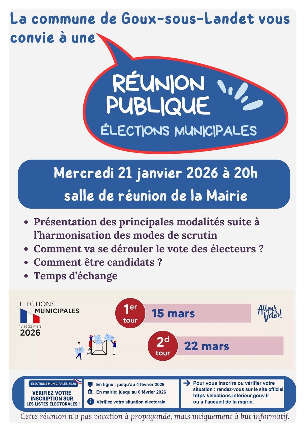 RÉUNION PUBLIQUE ELECTIONS MUNICIPALES LE 21/01/2026 : NOUVELLES MODALITÉS