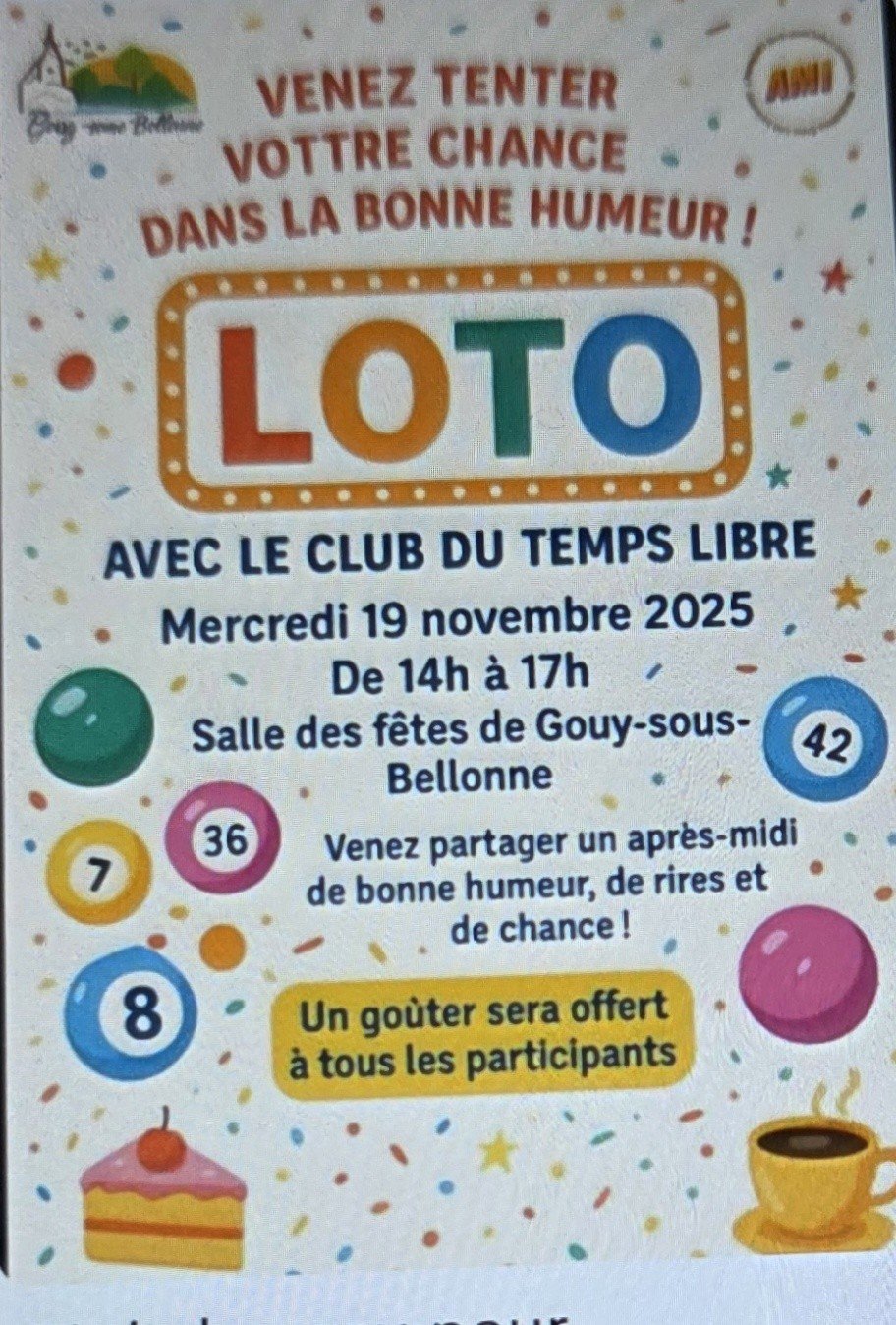A GOUY-SOUS-BELLONNE, l'A.M.I (Association Multiloisirs Intercommunale), le Comité Communal des Fêtes et le Club du Temps Libre, ont décidé d'organiser de commun accord, un loto transgénérationnel tous les ans, et ce, depuis plus d'une dizaine d'années.