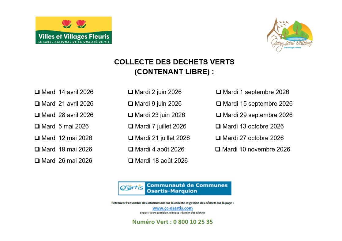 CALENDRIER COLLECTE DES DÉCHETS VERTS...