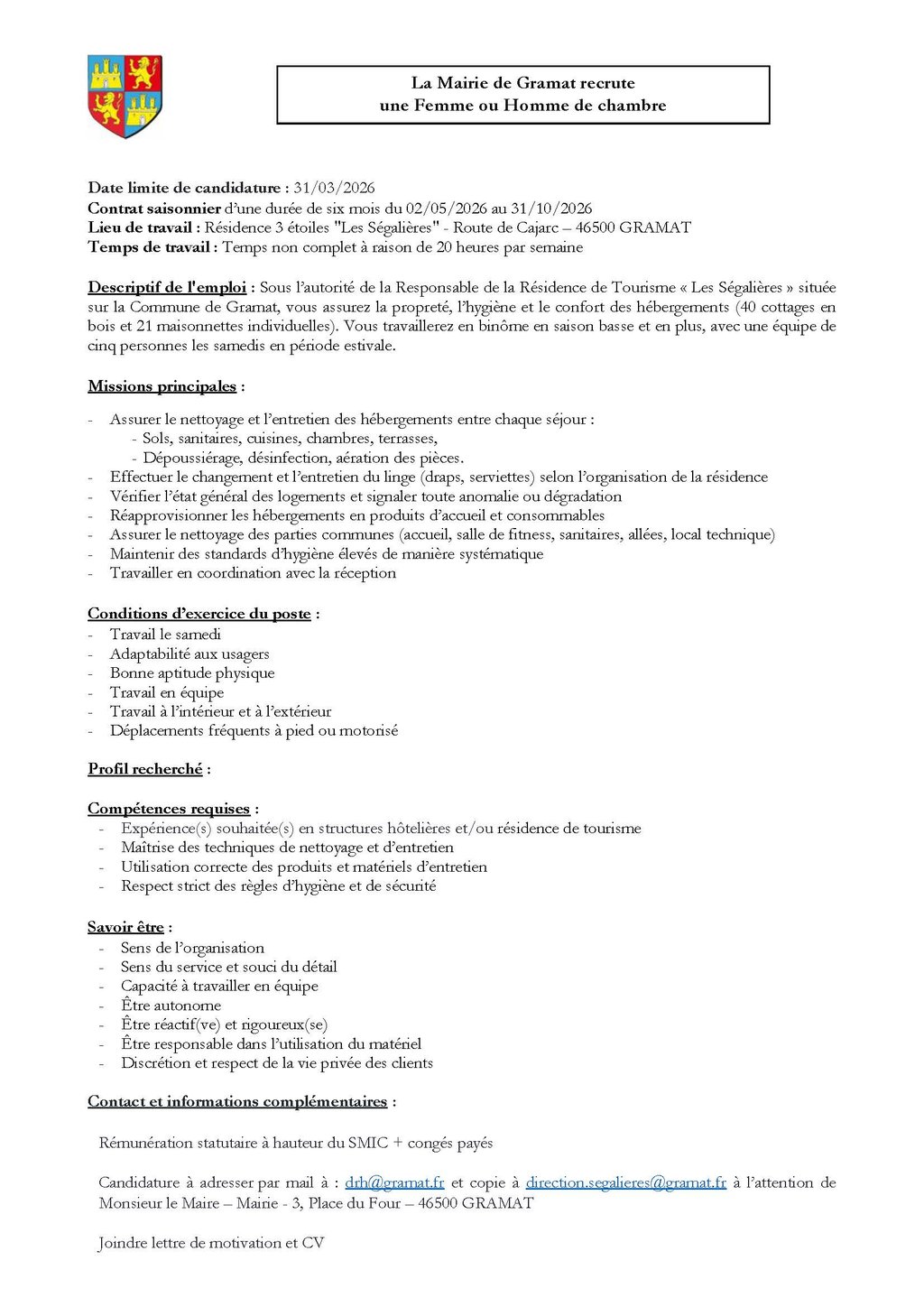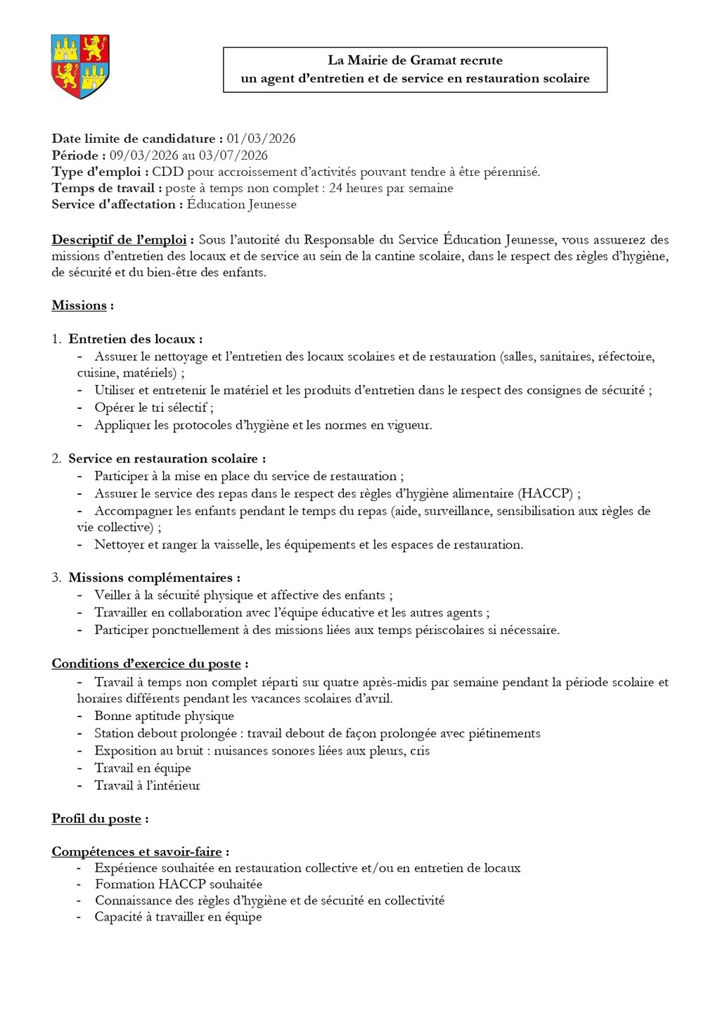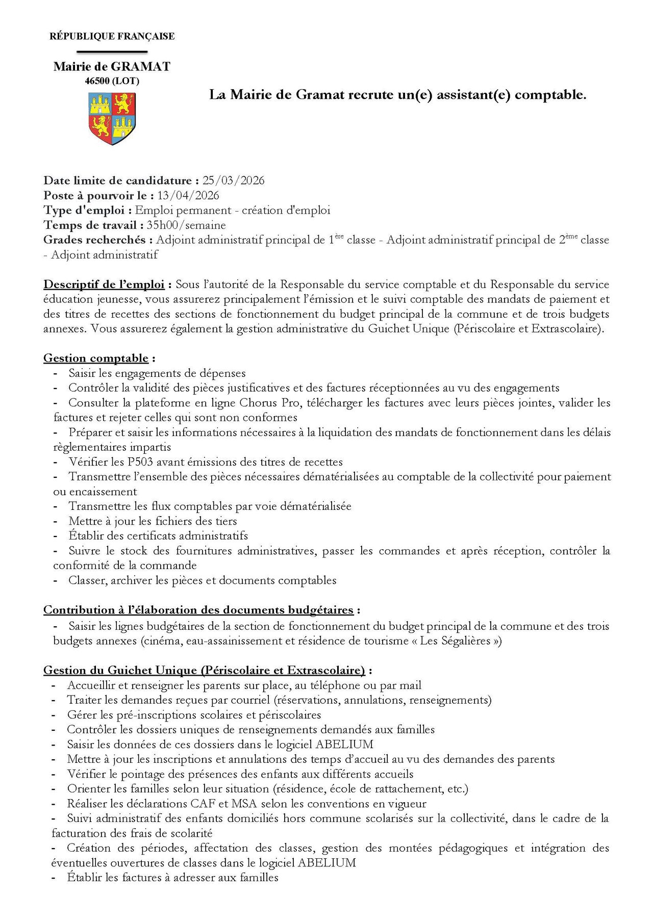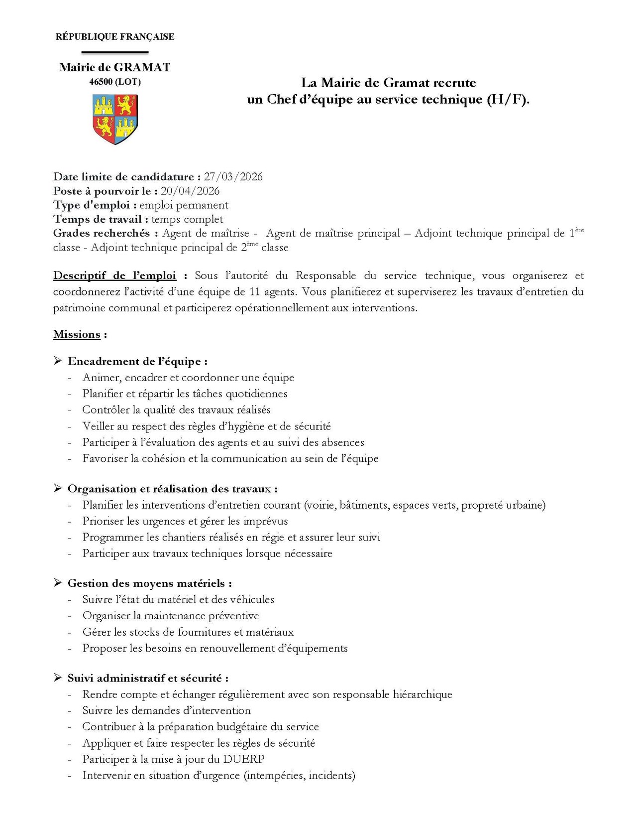 📢 La Mairie de Gramat recrute