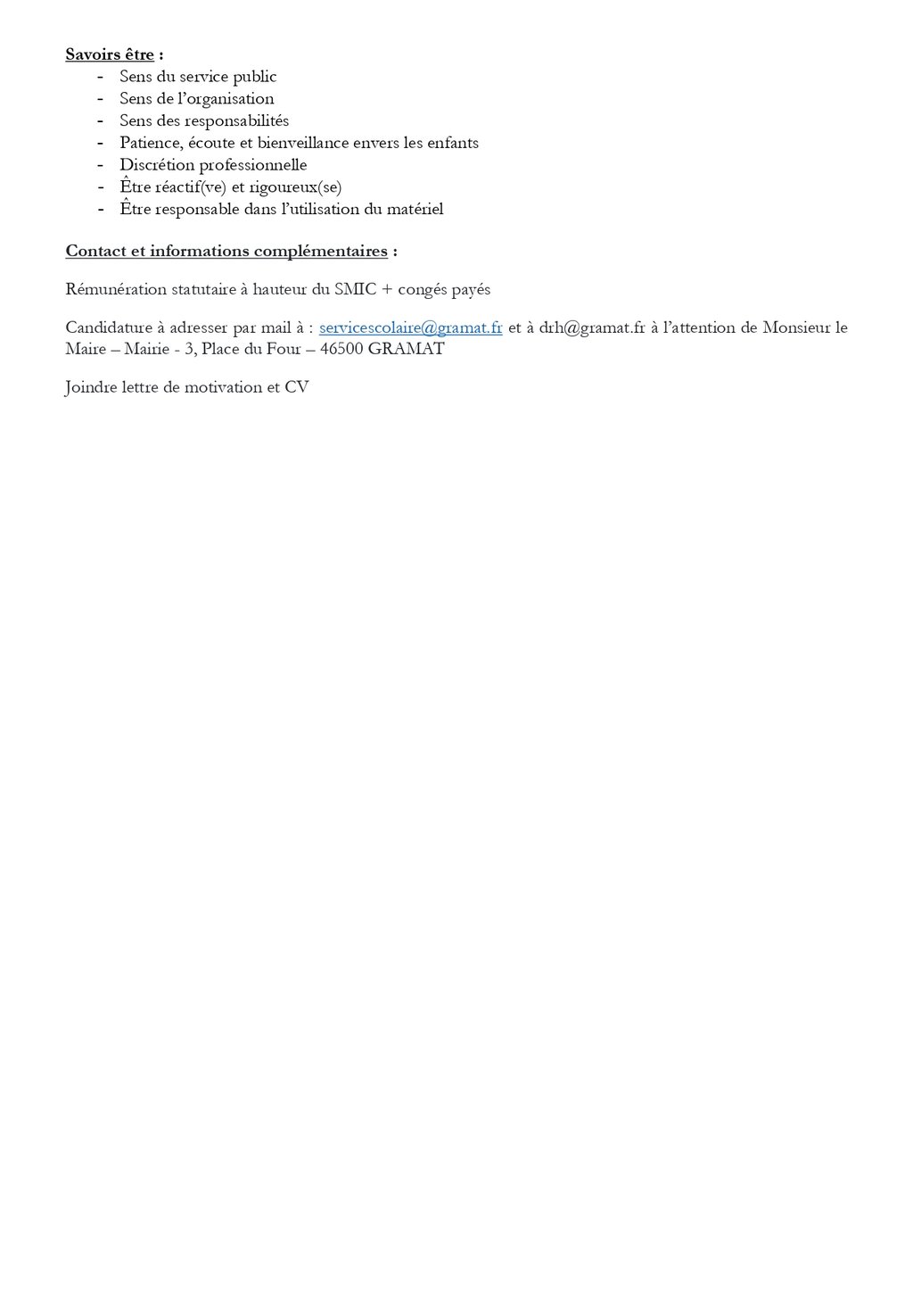 OFFRES D'EMPLOI MAIRIE DE GRAMAT