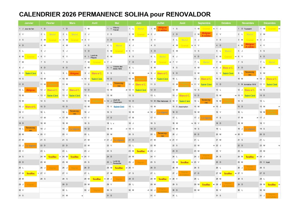Ci-joint le calendrier annuel et le dépliant d'informations.