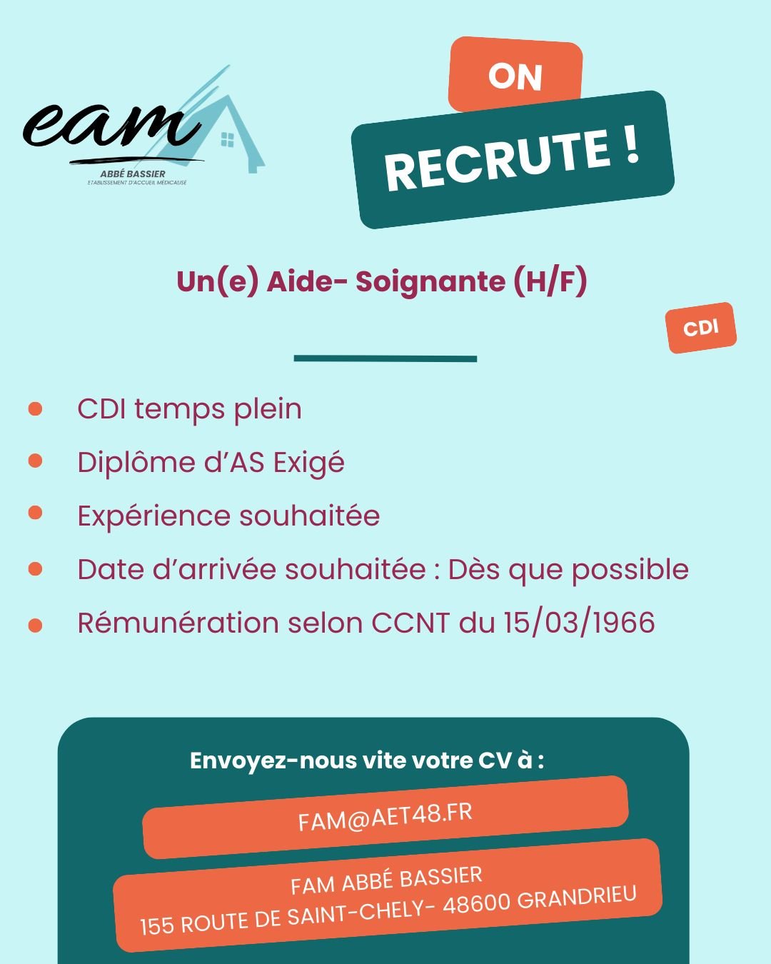 RECRUTEMENT - AIDE SOIGNANT (H/F)