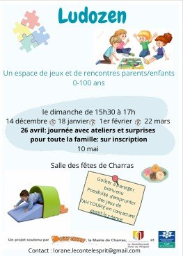 Veuillez trouver ci-joint un flyer à destination des familles : les dates des séances de la LUDOZEN, espace de rencontre et de jeux parents/enfants.