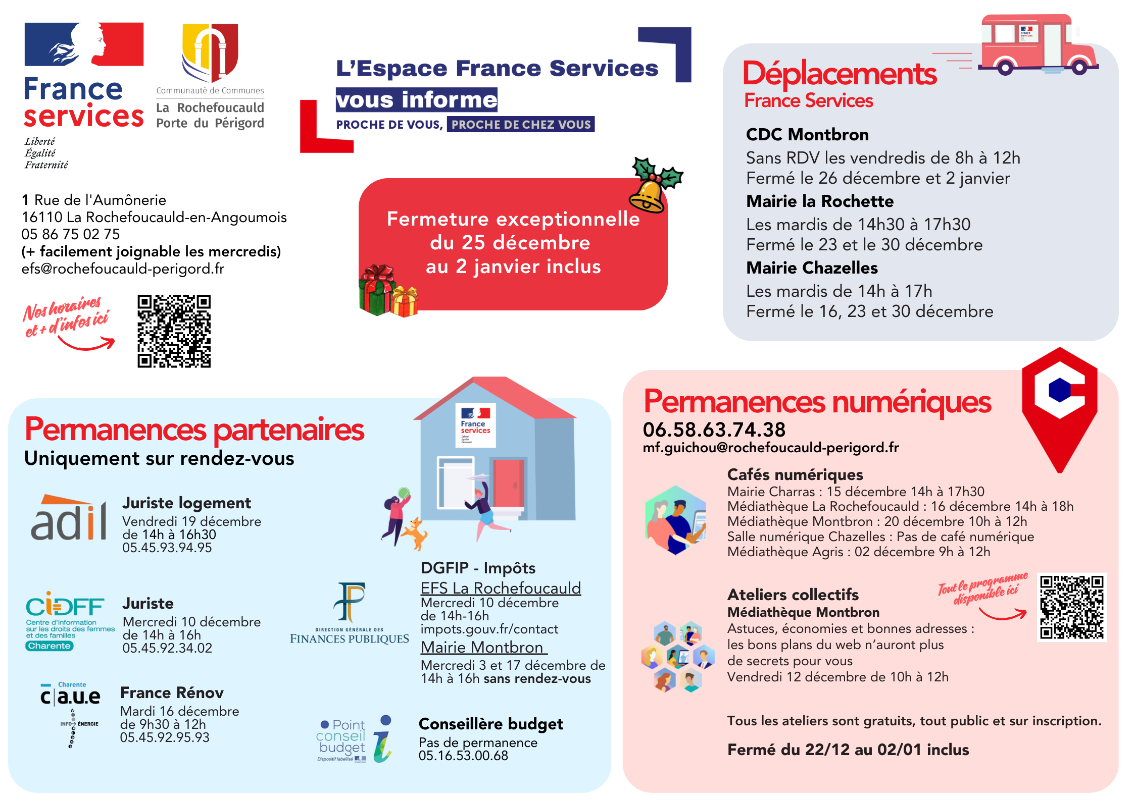 AGENDA FRANCE SERVICES LA ROCHEFOUCAULD DÉCEMBRE