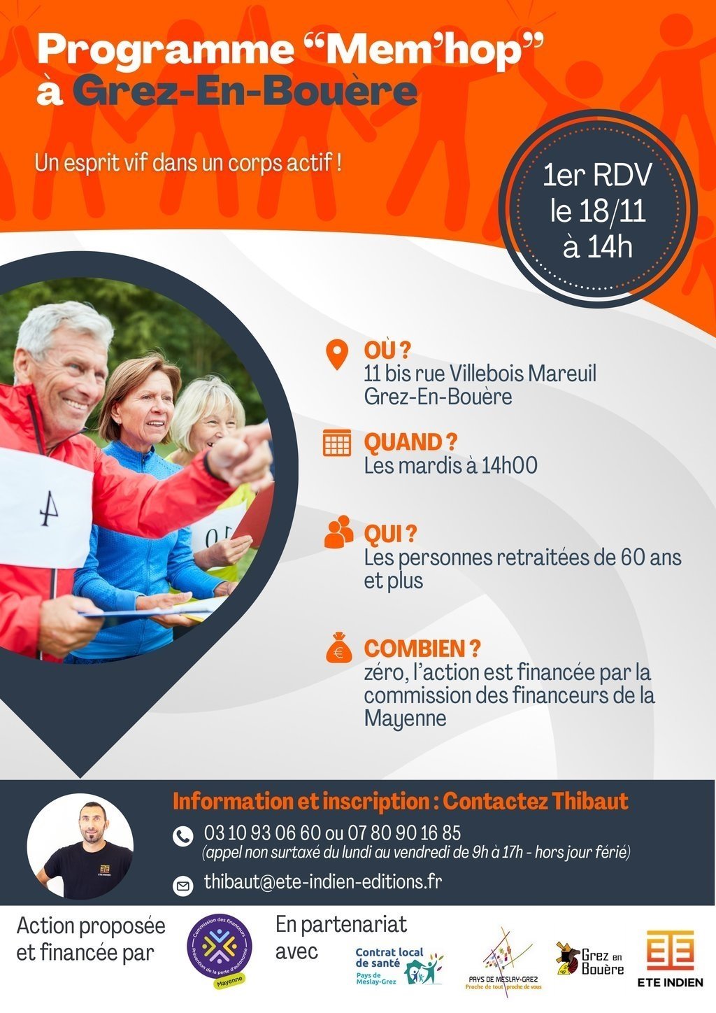 Conditions d’inscription : avoir 60 ans et plus. Habiter sur le Pays de Meslay-Grez.