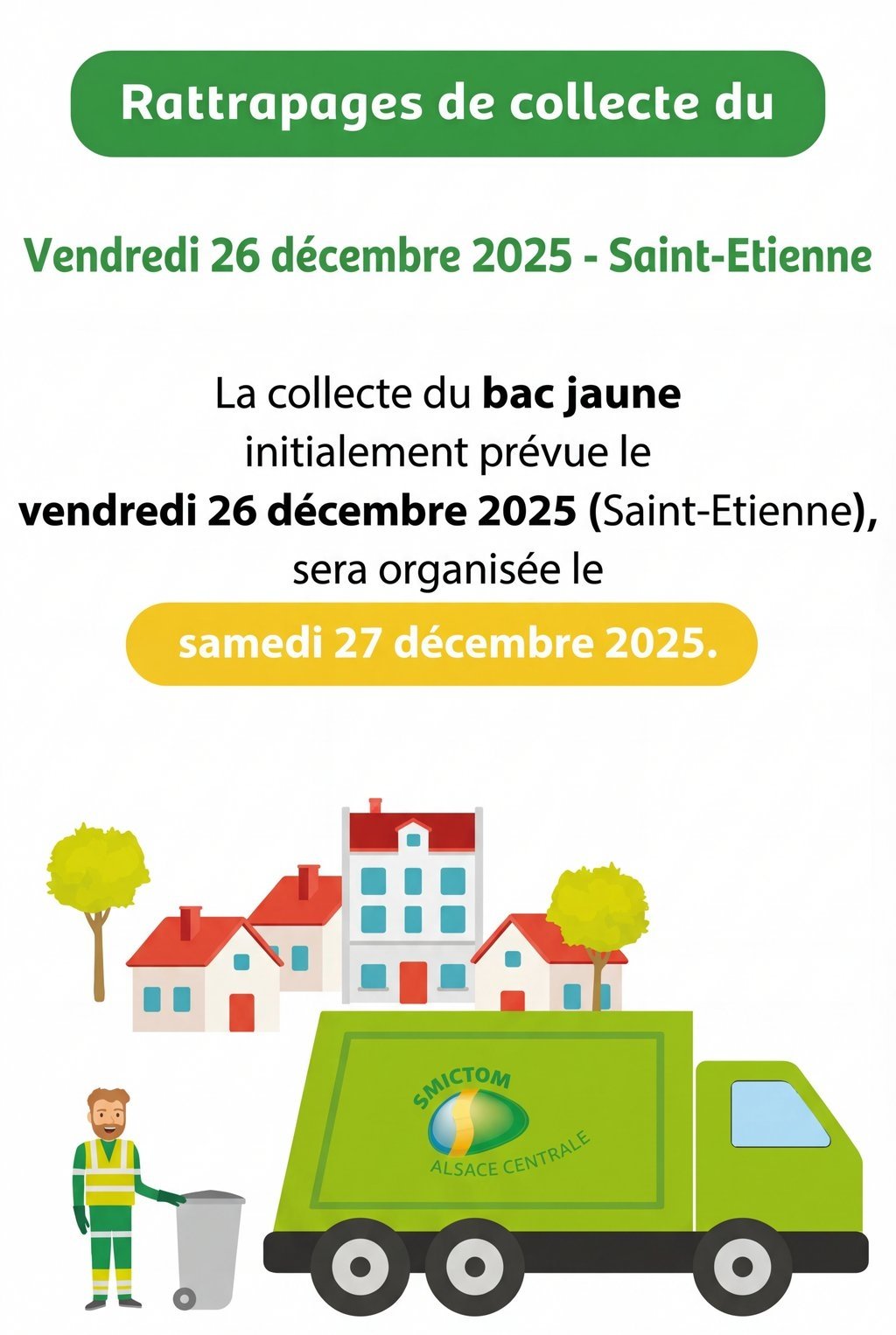 SMICTOM_🚛❌vendredi 26 dĂ©cembre (St Etienne) ⚠La collecte sera organisĂ©e le samedi 27 dĂ©cembre 2025