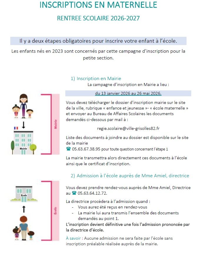 INSCRIPTIONS RENTRÉE SCOLAIRE 2026 - 2027