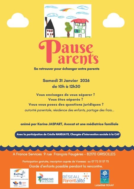 Ce temps est animé par la médiation familiale 82, une avocate, une psychologue et a pour but de mieux informer les parents au sujet de la séparation, de favoriser une réflexion sur le choc, la crise de la séparation, l’expérience des parents, les besoins des enfants lors de la séparation, l’exercice de la parentalité - les aspects juridiques ....