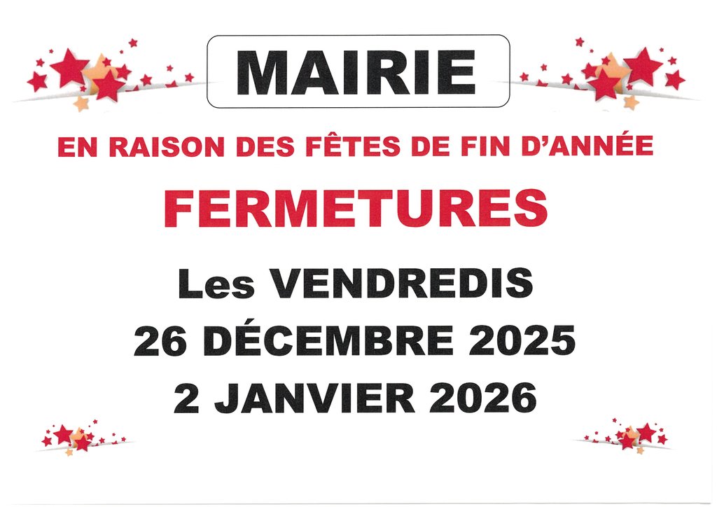 EN RAISON DES FÊTES DE FIN D'ANNÉE