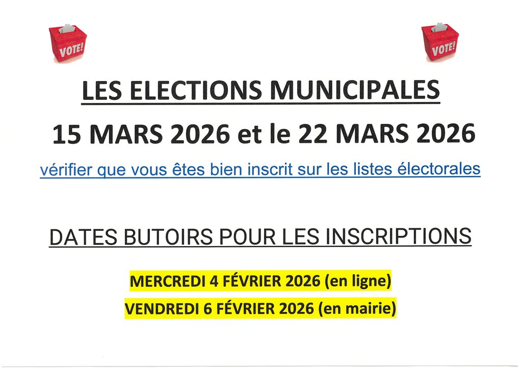 Les élections municipales auront lieu les 15 et 22 mars 2026. Si ce n’est déjà fait, pensez à vous inscrire sur les listes électorales avant la date butoir.