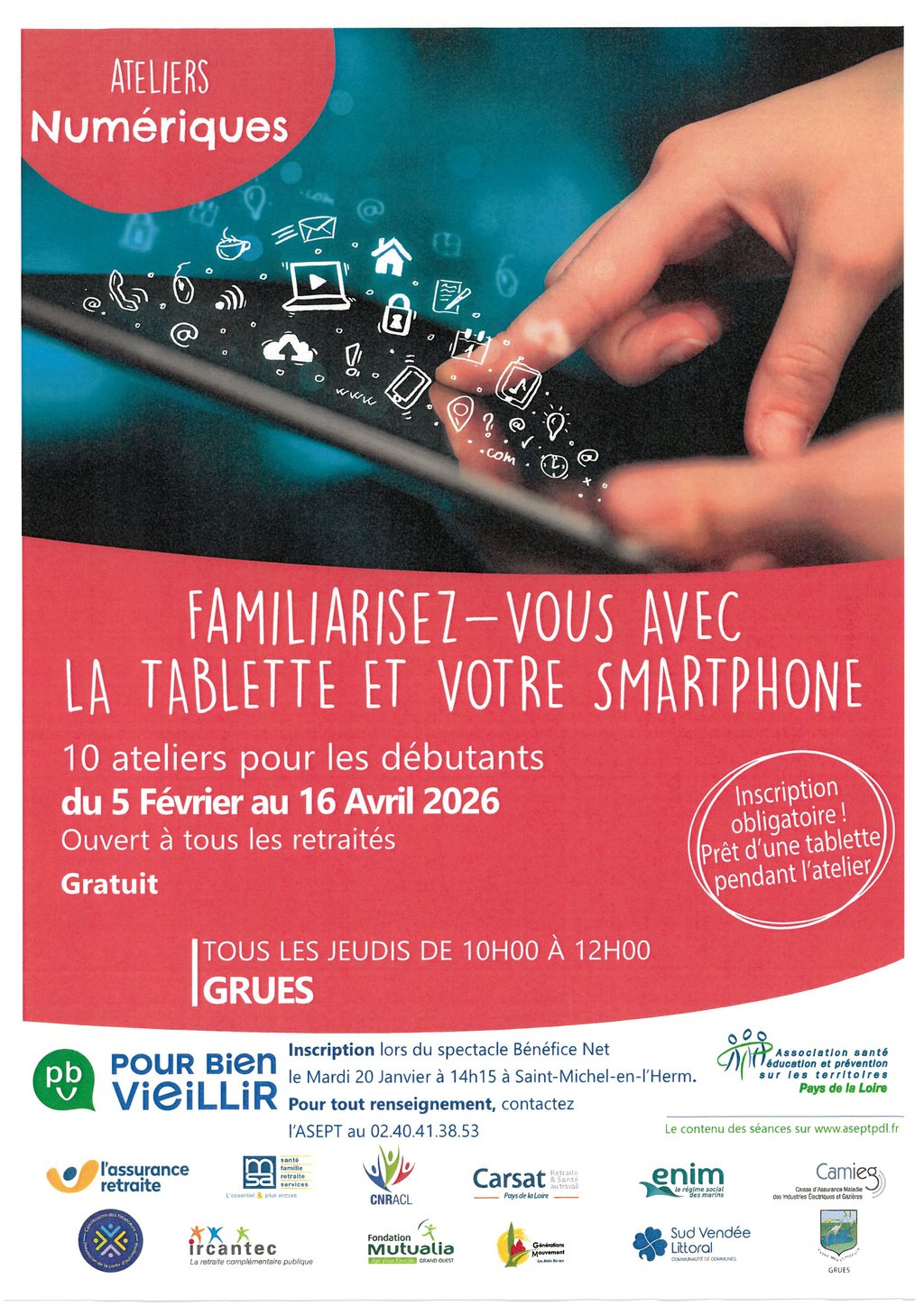 Ouvert à tous les retraités (INSCRIPTION OBLIGATOIRE ! PRÊT D'UNE TABLETTE POUR L'ATELIER