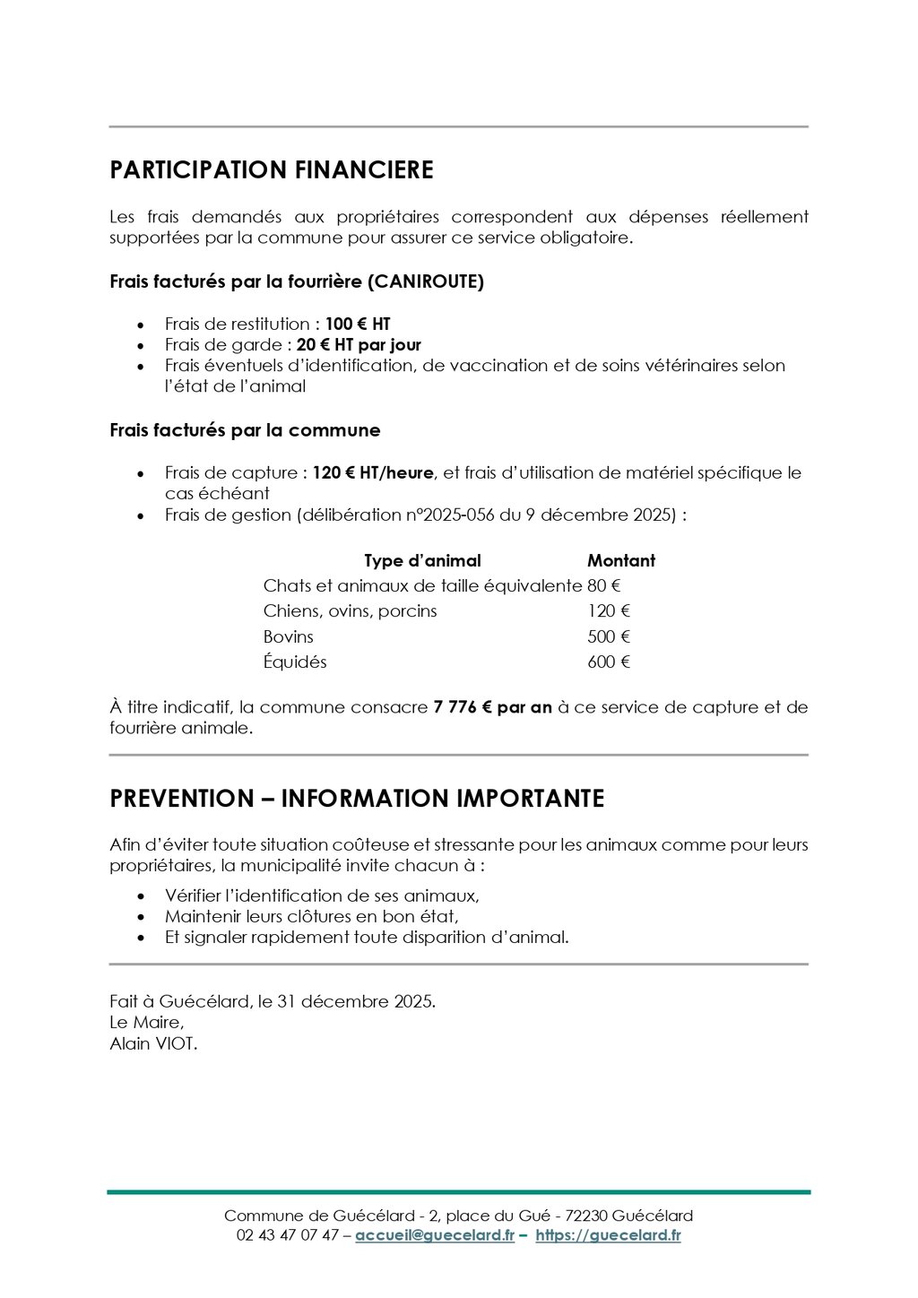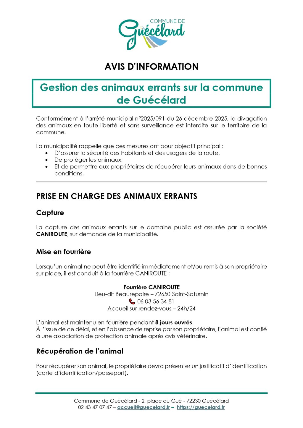 đŸ ANIMAUX ERRANTS Ă GUĂCĂLARD â INFORMATION IMPORTANTE