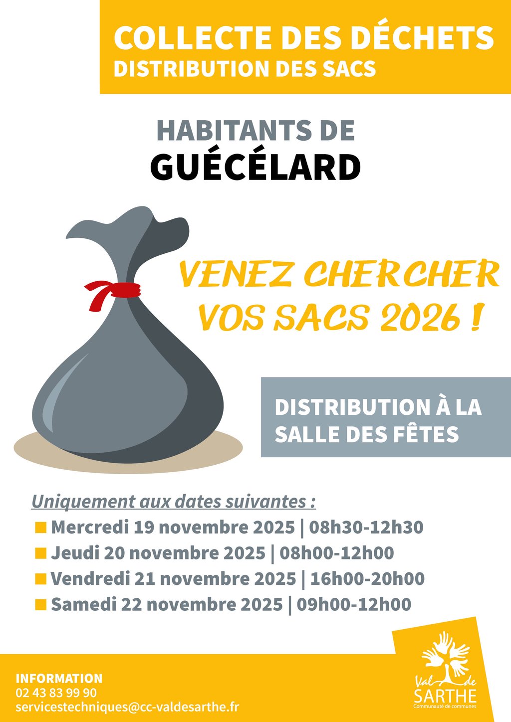 Distribution des sacs ordures ménagères cette semaine, 26 chemin du Dauphin, dans la salle des fêtes