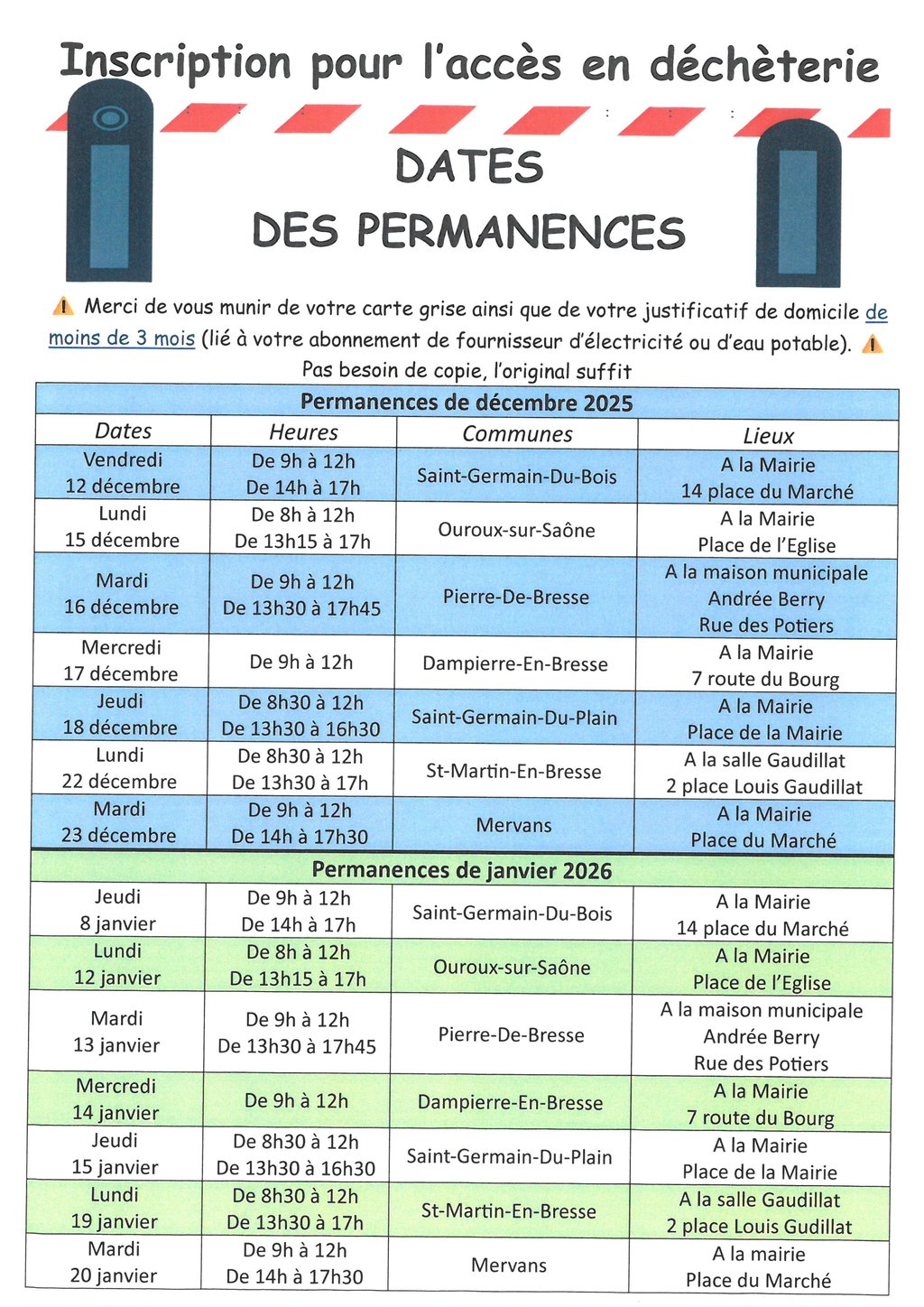 DATES PERMANENCES INSCRIPTIONS ACCÈS DÉCHÈTERIES