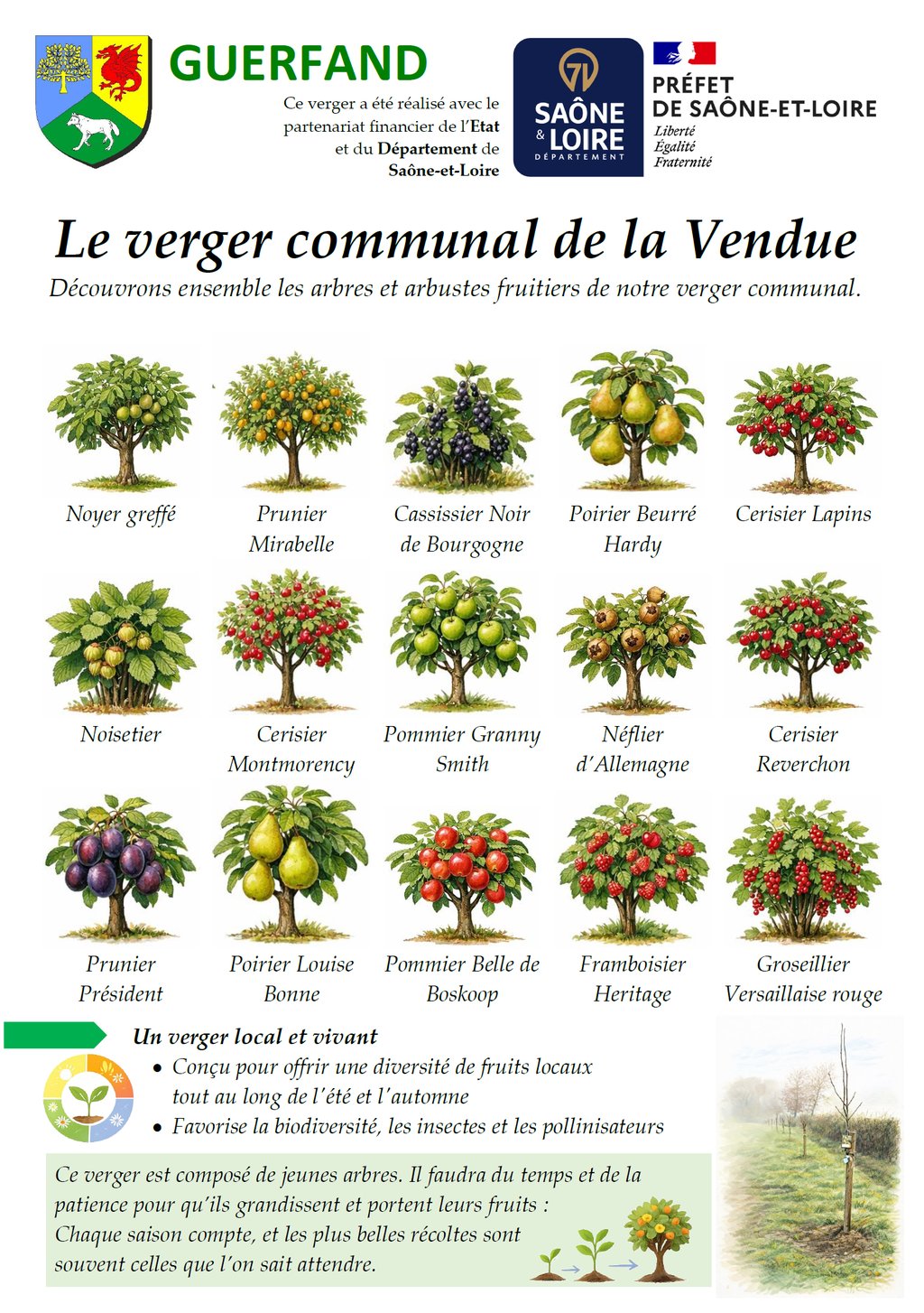 GrĂące Ă cette dĂ©marche cohĂ©rente, le projet global dâamĂ©nagement de la route de lâAbergement (trottoir, chemin piĂ©ton et verger) a bĂ©nĂ©ficiĂ© de 77,5 % de subventions, dont 10 000 ⏠attribuĂ©s par le DĂ©partement de SaĂŽne-et-Loire, subvention conditionnĂ©e Ă la rĂ©alisation de ces plantations.