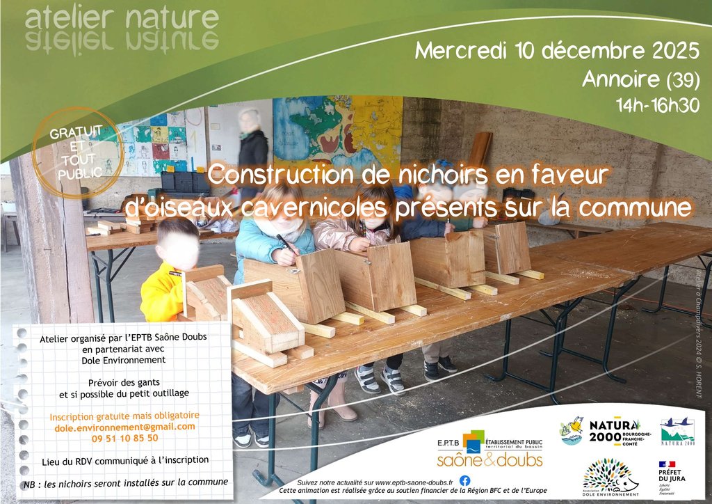 Venez contribuer à l’accueil d'oiseaux cavernicole présents sur la commune d'Annoire ! Au programme, construction de nichoirs qui seront installés sur la commune à l’issue de la journée.
