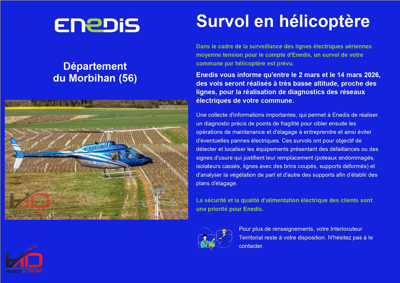 Dans le cadre de la surveillance des lignes électrique d'ENEDIS, un hélicoptère survolera la commune à très basse hauteur.