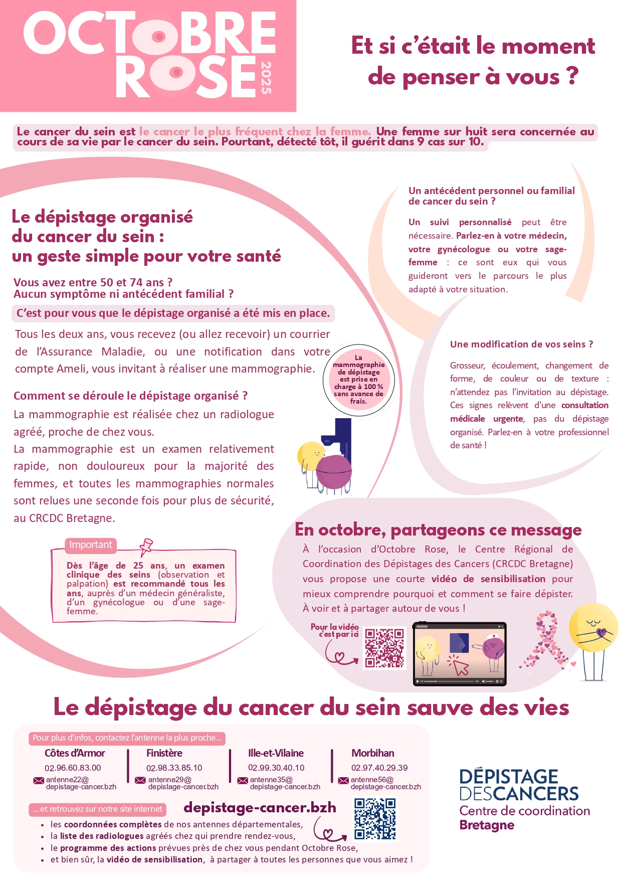 Trouvez ci-dessous, des explications pour le dépistage du cancer du sein et une vidéo.