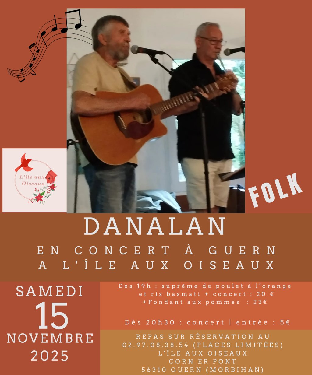 Rendez vous le samedi 15 novembre pour le prochain concert folk avec le duo Danalan (Daniel et Alan du groupe Kelt Ha Breizh qui est déjà venu l'année dernière et vous avez fait danser ! Alors venez pour profiter d'une très bonne ambiance festive