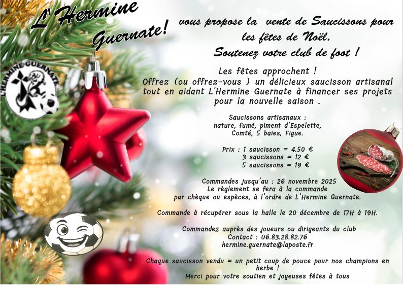 L'Hermine Guernate propose une vente de saucissons pour les fêtes!